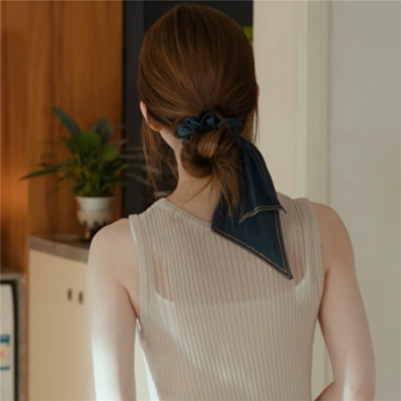 许研同款赵露思同款百搭牛仔飘带发圈头绳发饰头花扎马尾皮筋发绳