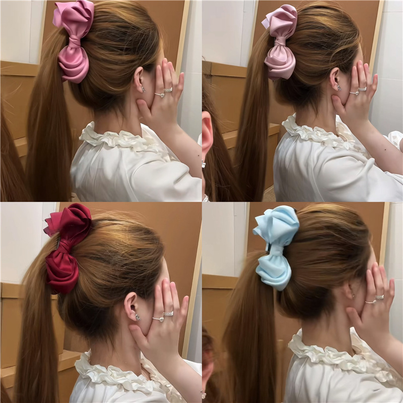 韩国立体绸带小众头顶大蝴蝶结发夹飘带发饰竖夹马尾夹向下香蕉夹