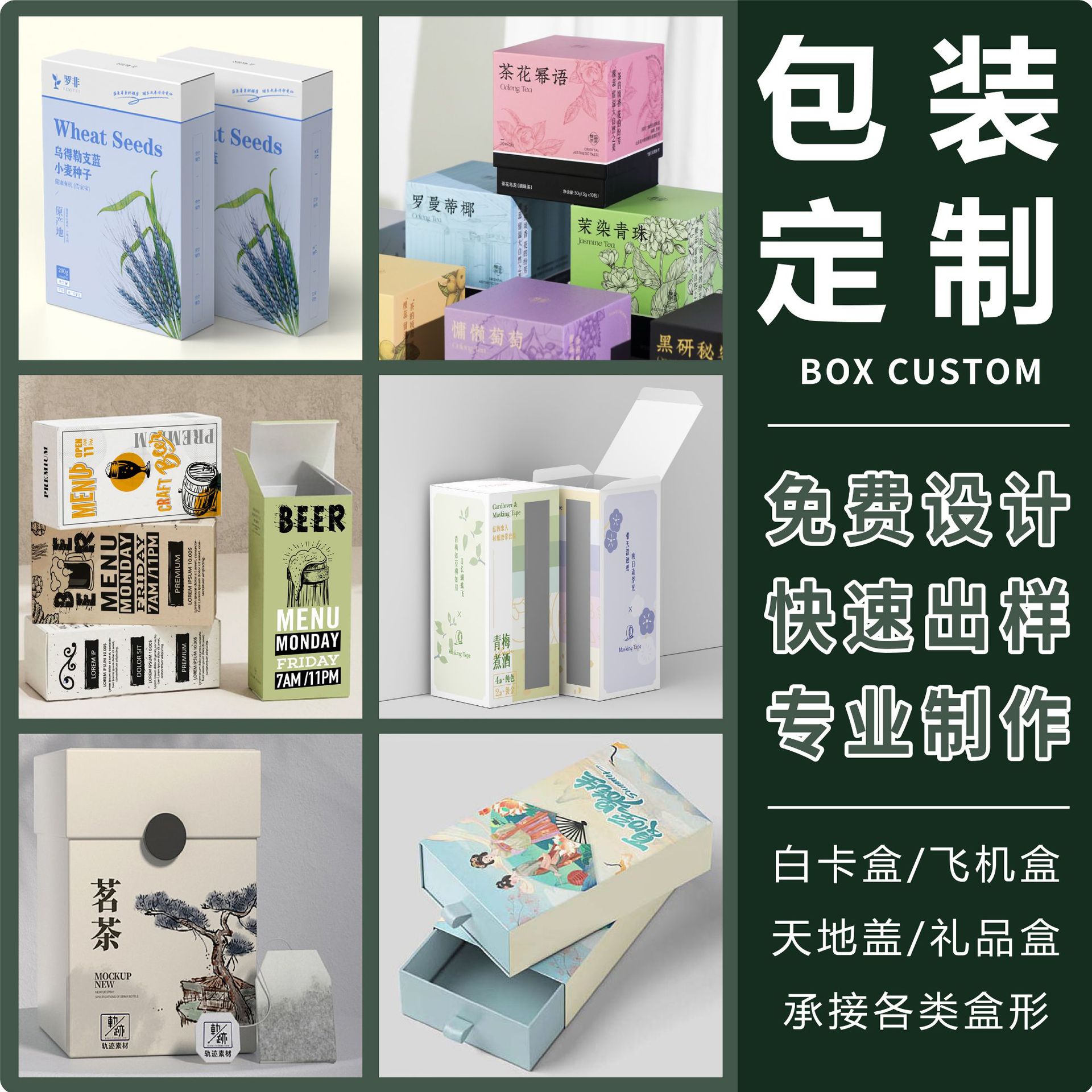 规格型号 白卡纸盒定制;定制,挂钩盒;定制,飞机盒;定制,手提瓦楞盒定制;定制,翻盖礼盒;定制,天地盖礼盒;定制,抽屉礼盒;定制,手提袋;定制