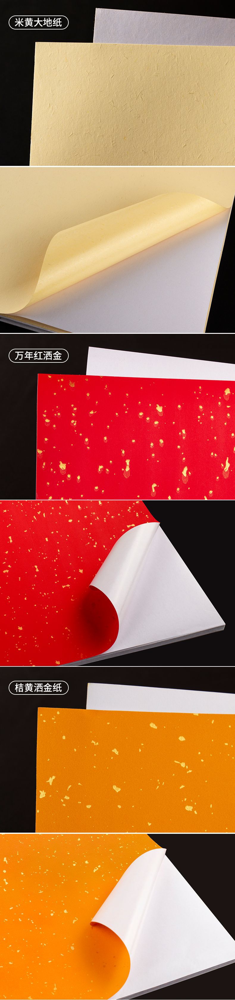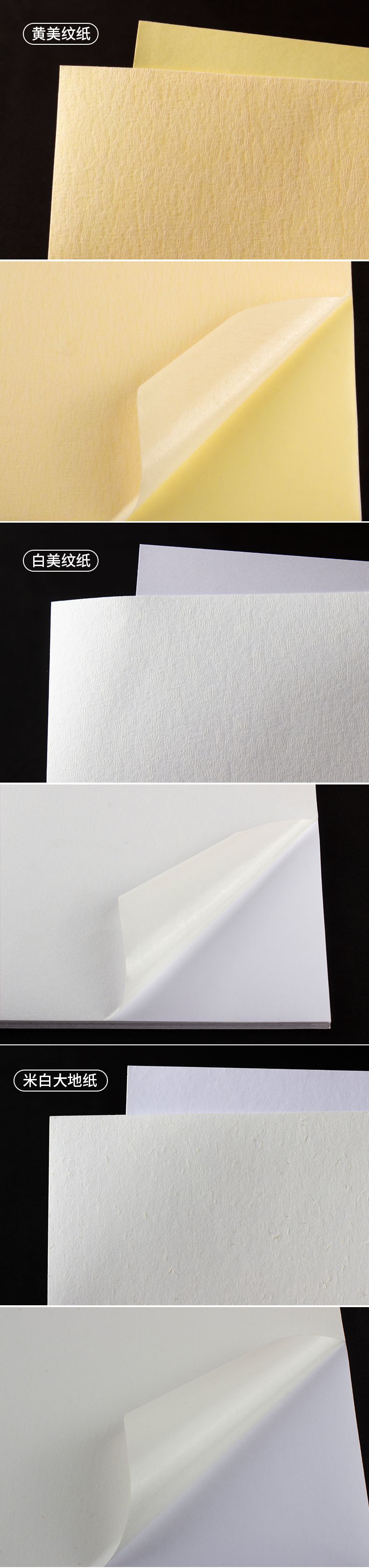 米黄大地纸/热胶/白底,米白大地纸/热胶/白底,黄美纹纸/热胶/黄底,白美纹纸/热胶/白底,万年红洒金纸/热胶/白底,桔黄洒金纸/热胶/白底,米色洒金纸/热胶/白底,树皮纹/热胶/白底,宣纸/水胶/白底,米黄水纹纸/热胶/白底,漂白水纹纸/热胶/白底