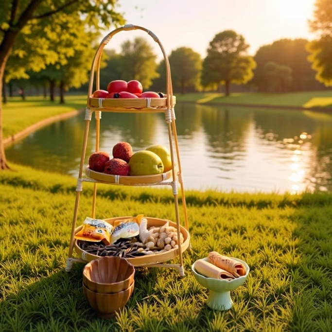 オリジナル竹ポータブルスナックトレイ、ティーポット、アフタヌーンティー、ペストリー、ホテル中華風盛り合わせ、スナック、ドライフルーツ、フルーツトレイ