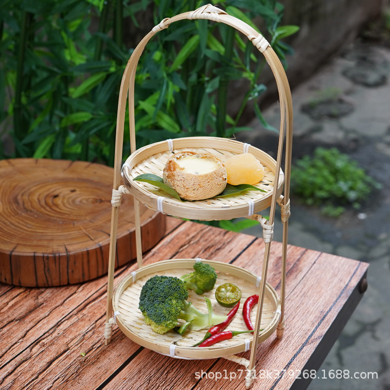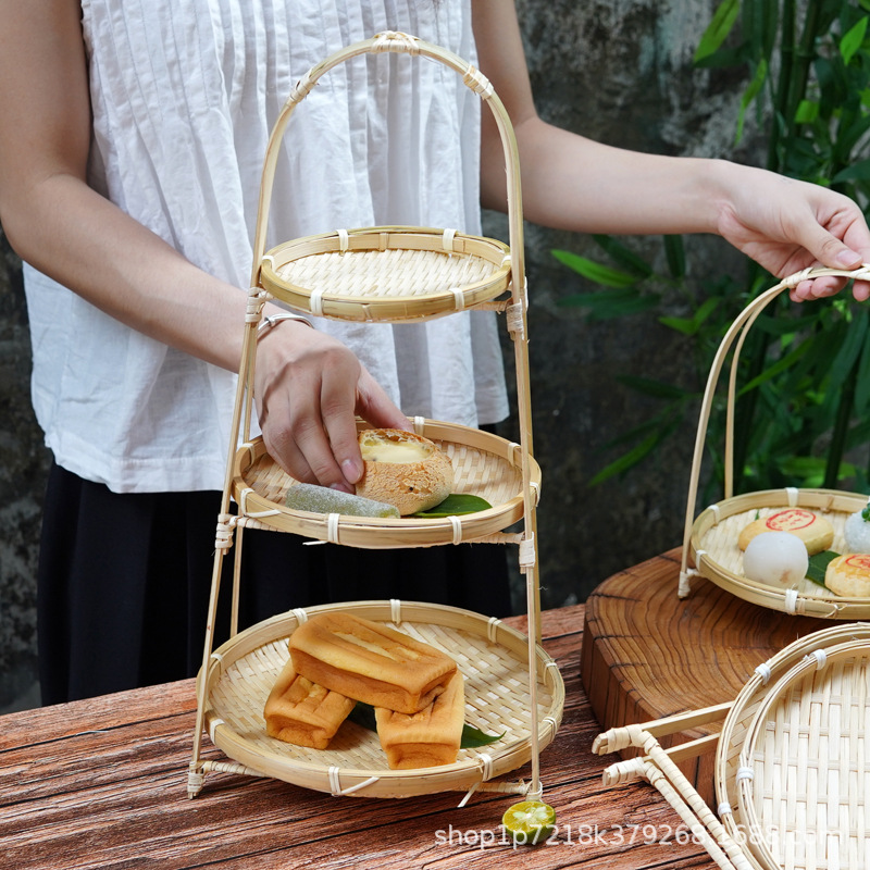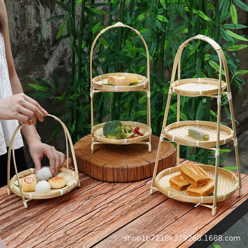 竹編み菓子果物かごケーキ展示棚手作り多層収納バスケット創意竹かご置物