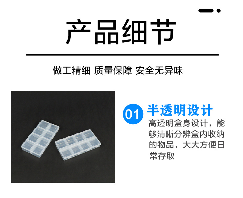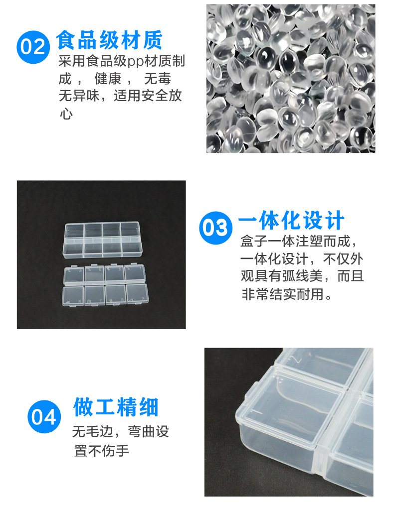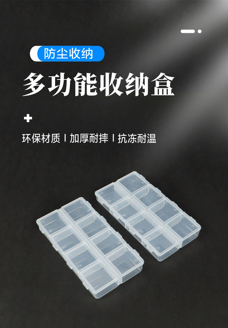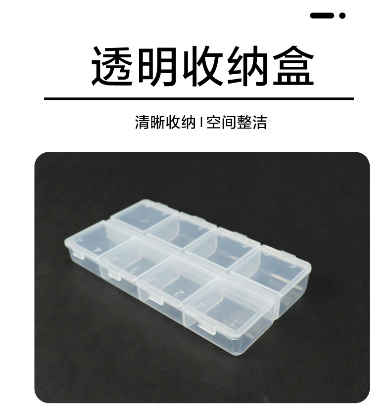 PP潮流简约长条透明塑料分装盒双排可拆装饰品美甲钻药品收纳盒子
