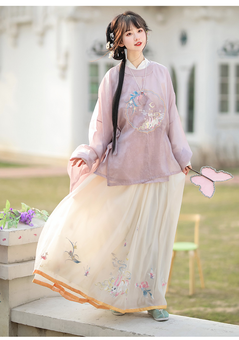 颜色 陌雨轩套装(圆领外衣+里衣+纱马面裙)