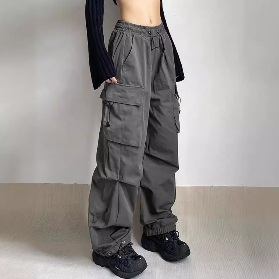 Y2k原宿レトロなストレートポケットのしわの高い街のヒップホップのカジュアルなパラシュートのズボンのゆったりした工装の広い足のズボン