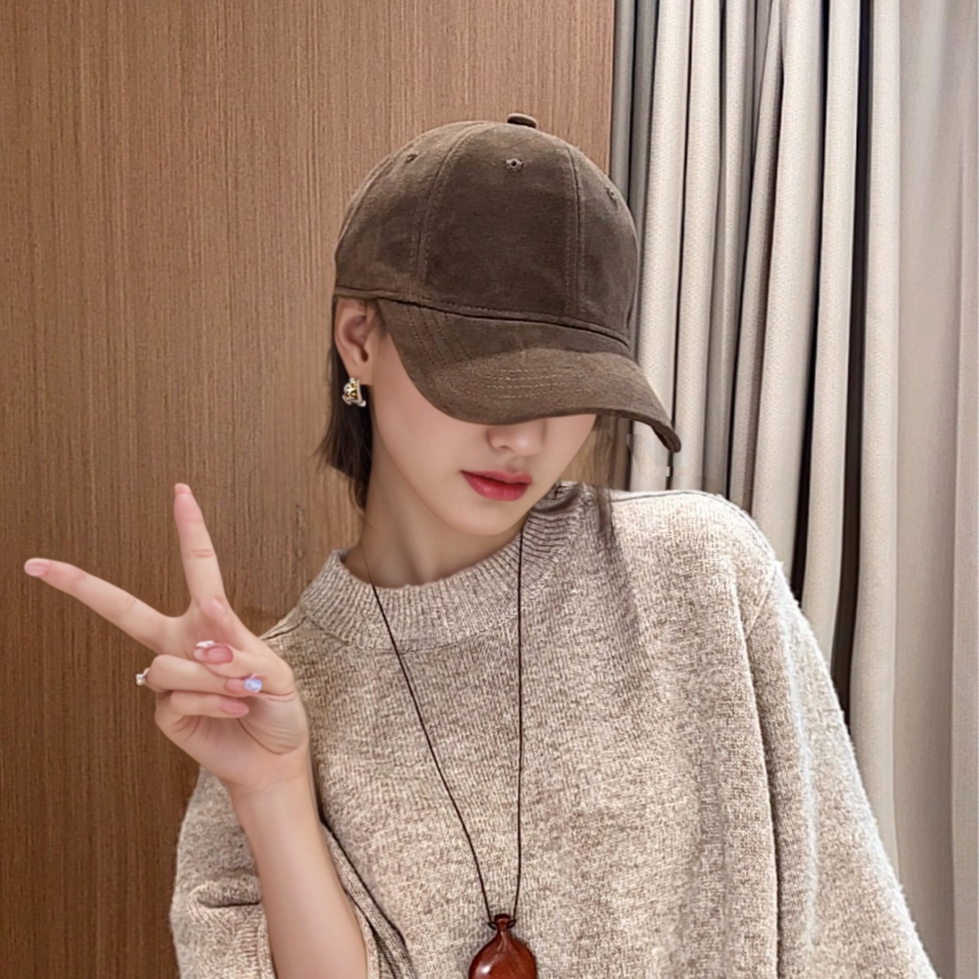 2025年翻毛皮高级日系复古时尚纯色显脸小气质百搭款棒球帽大头围