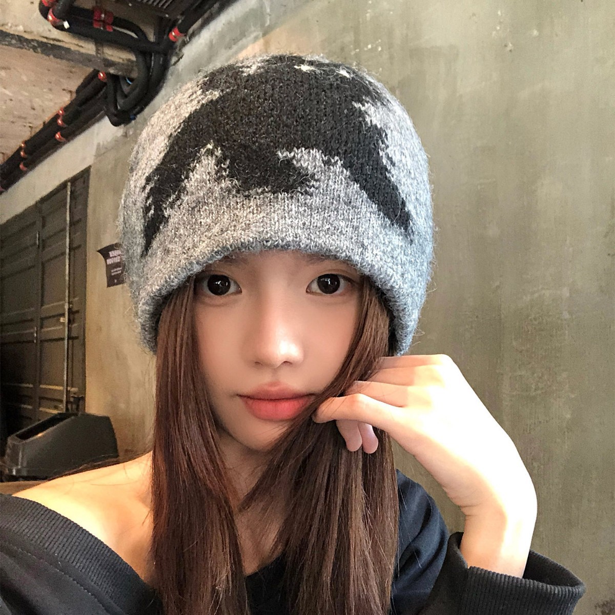韩版灰色堆堆帽女秋冬街头潮酷针织帽冷帽保暖显脸小护耳包头帽子