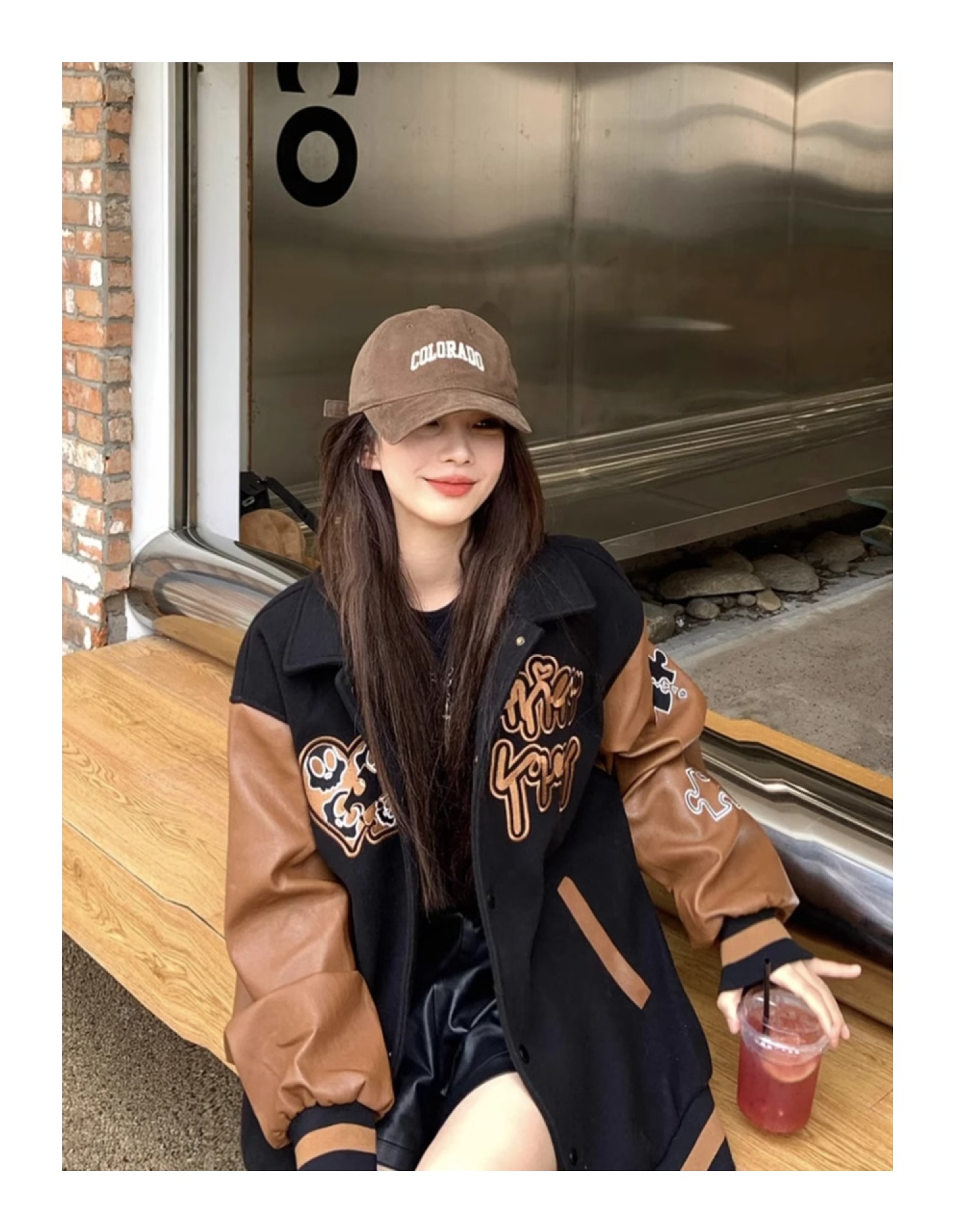 日韓系の小さいアルファベットの刺繍は古いカジュアルなレトロなファッションをします。