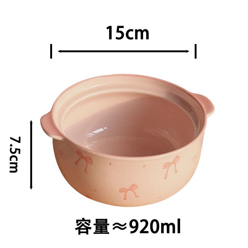 Ins系ご飯碗蝶結び陶磁器碗釉薬下彩家庭用ピンク少女心飯碗甜品碗可マイクロ波