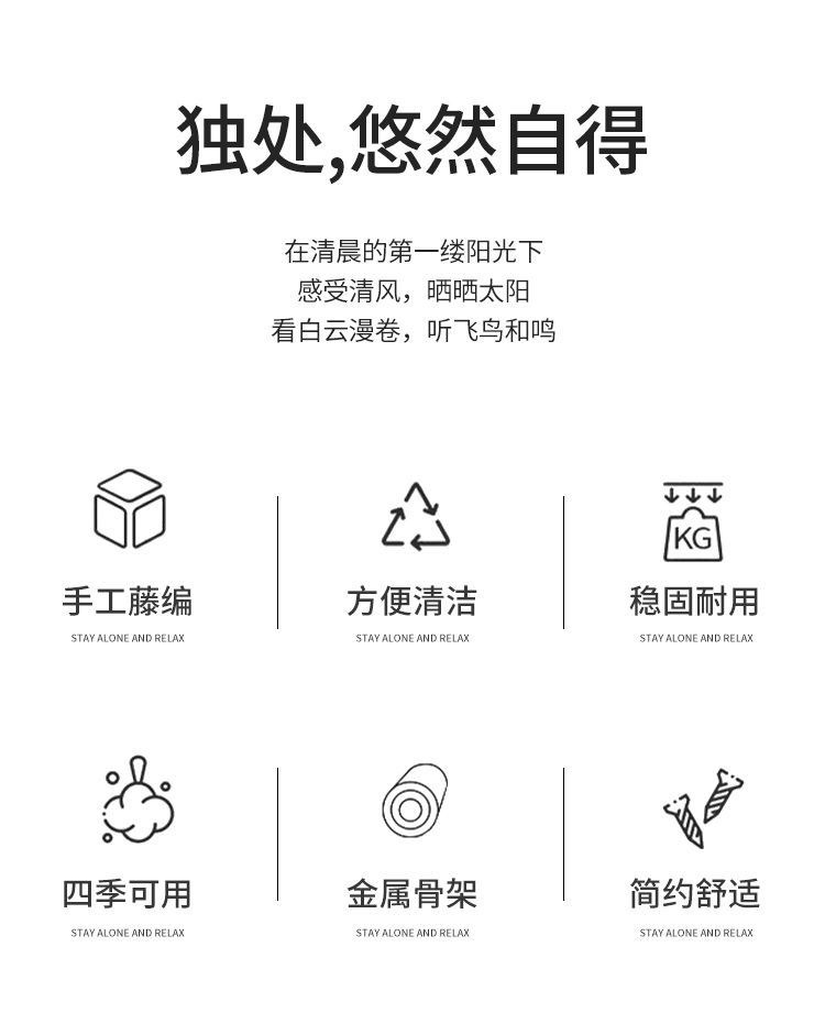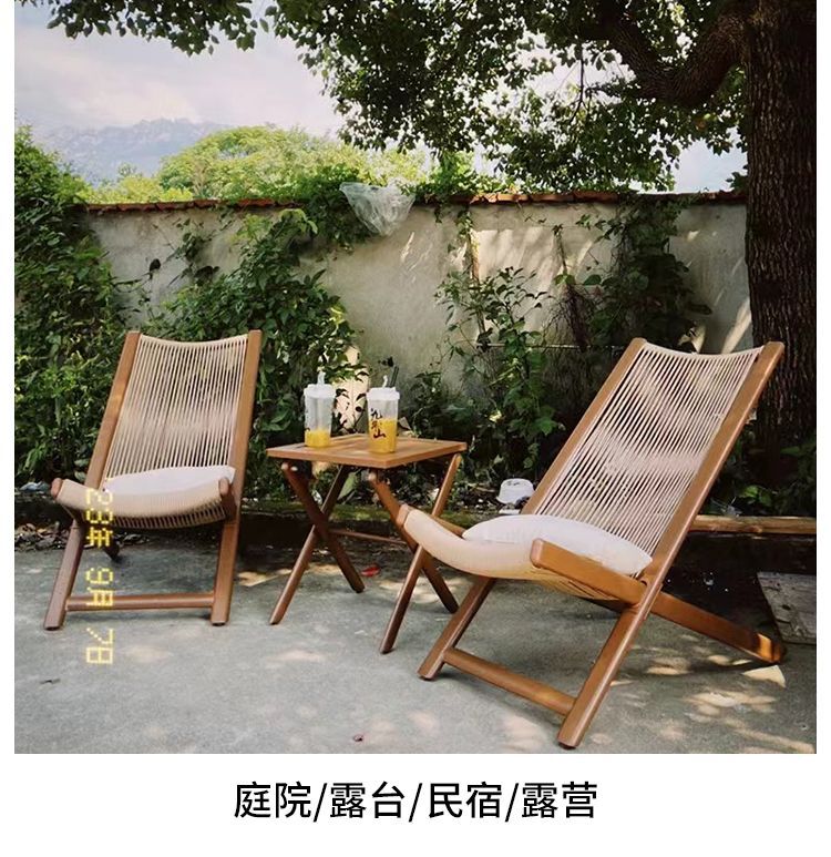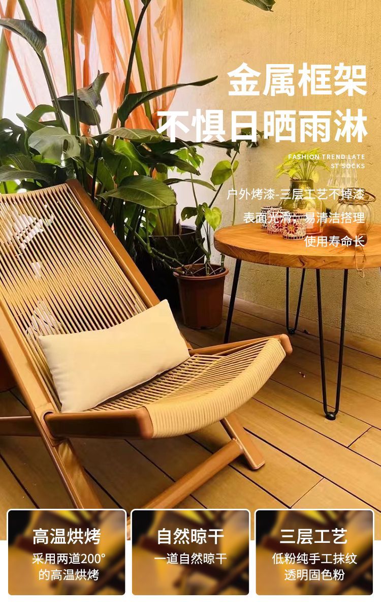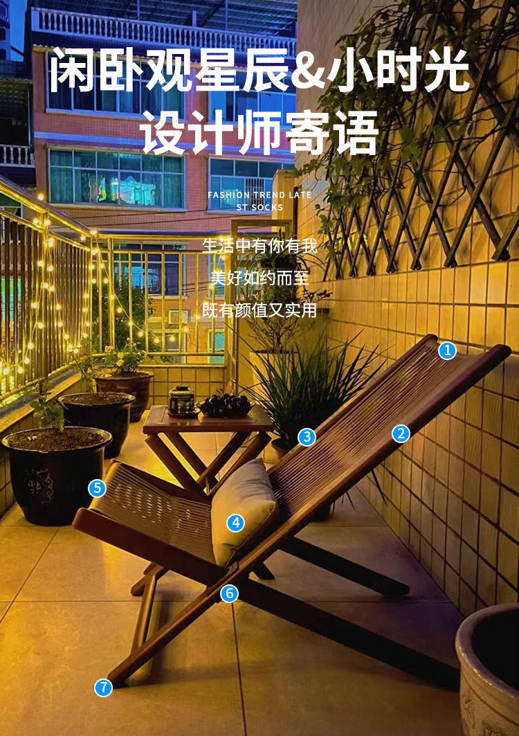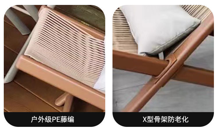 阳台户外桌椅组合庭院花园露台折叠休闲椅子防水新中式躺椅藤椅..