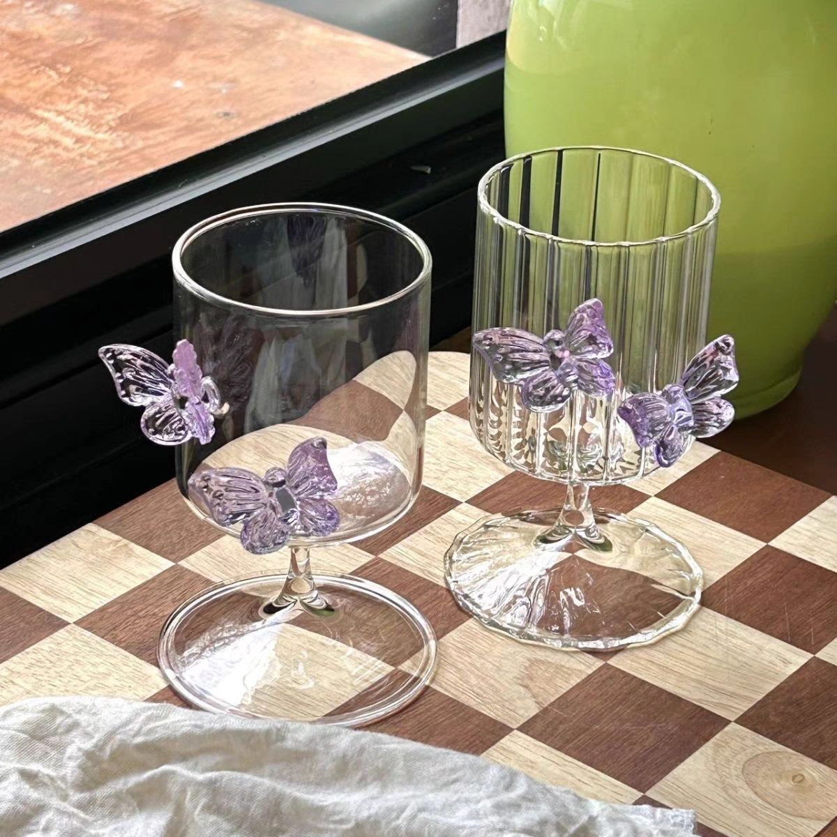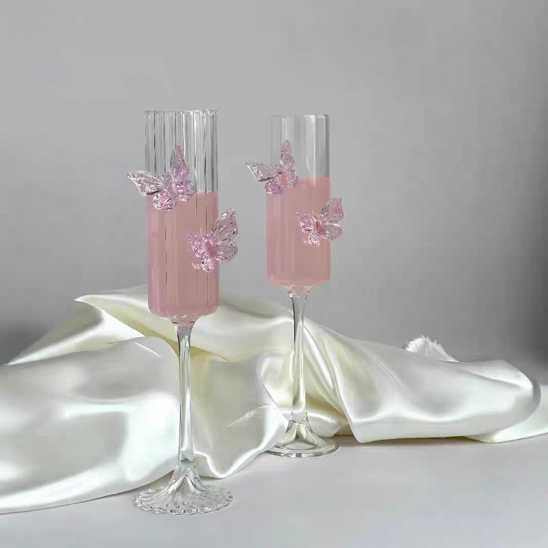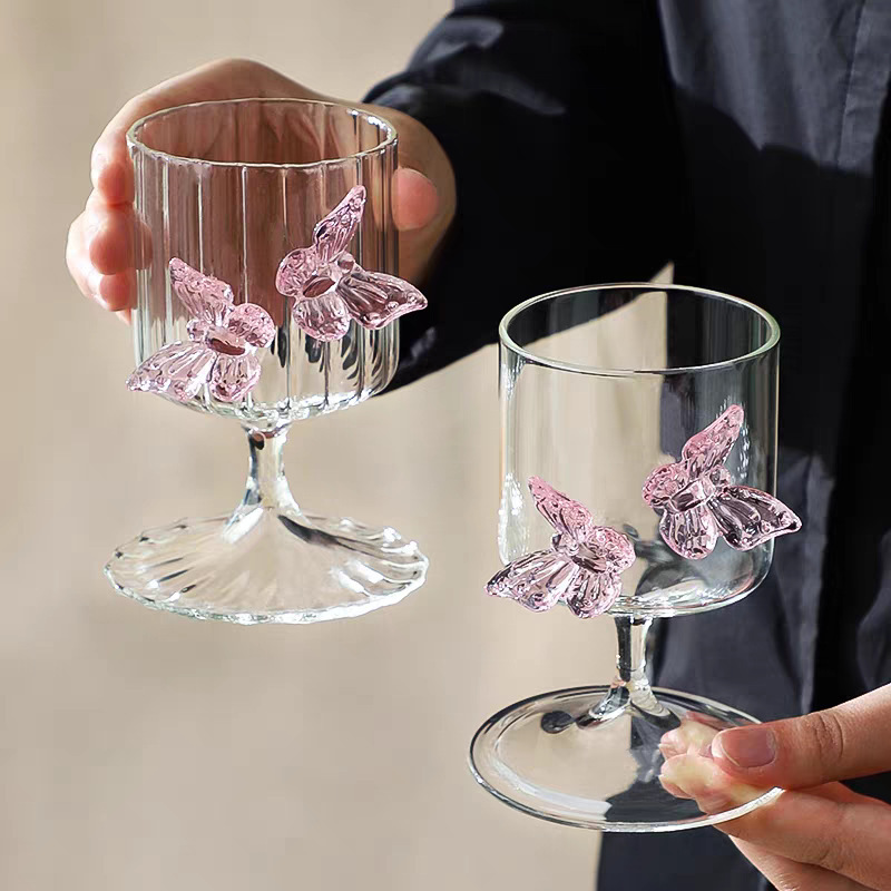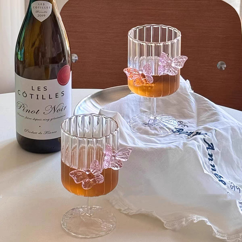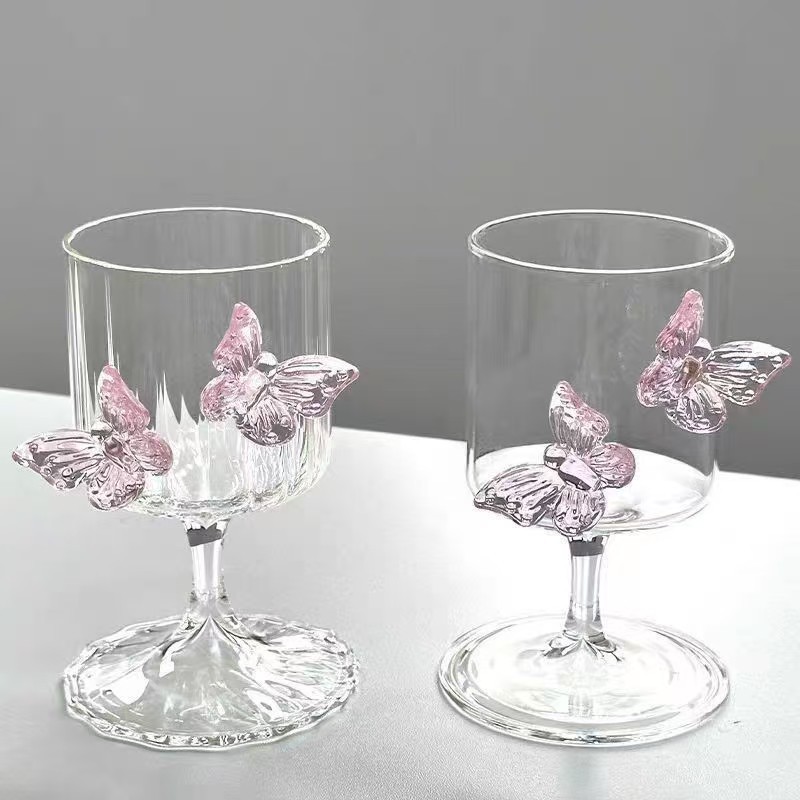 蝶高脚グラスシャンパンカップカクテルカップワイングラス家庭用ジュースカップ高ホウ素シリコンガラスカップ