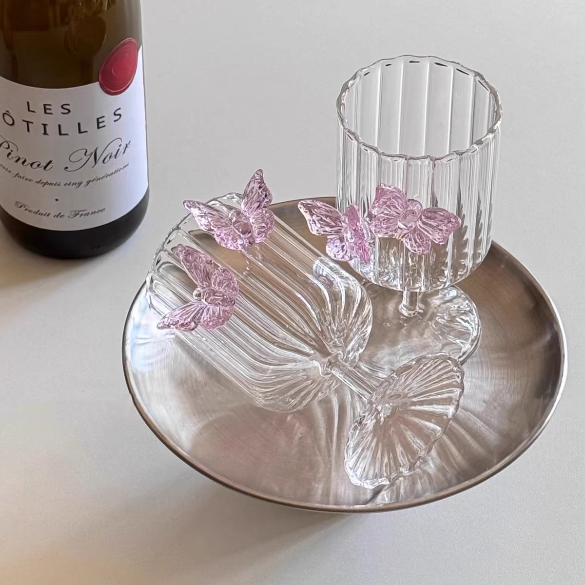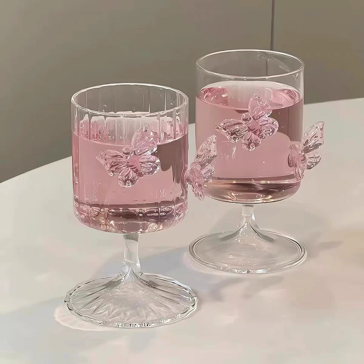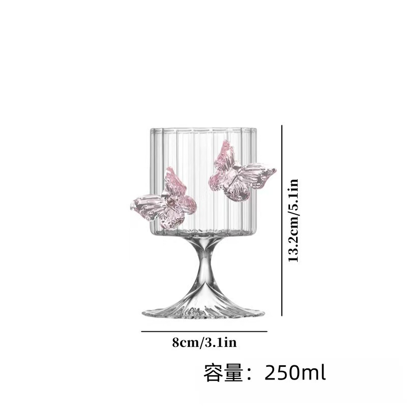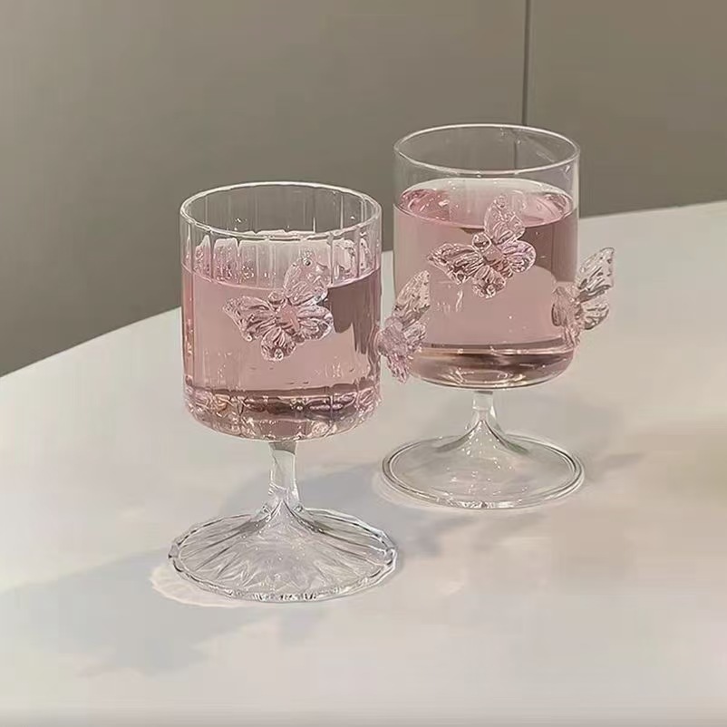 蝶高脚グラスシャンパンカップカクテルカップワイングラス家庭用ジュースカップ高ホウ素シリコンガラスカップ