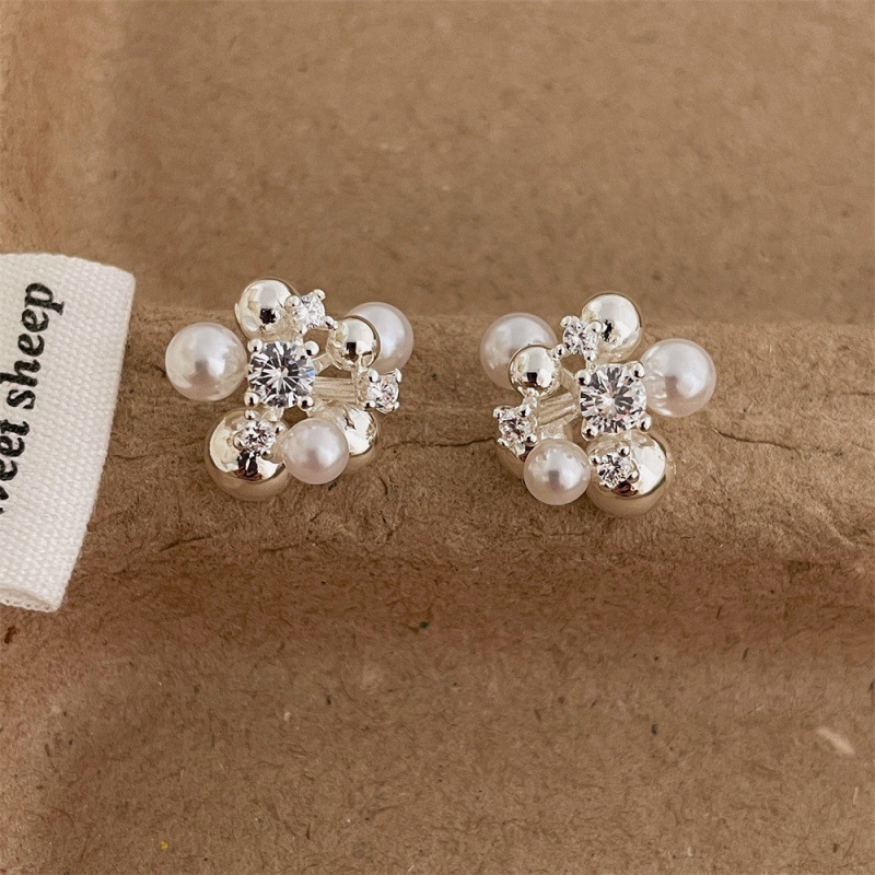 新款耳环微镶锆石珍珠韩版耳钉女百搭高级复古气质优雅独特耳饰