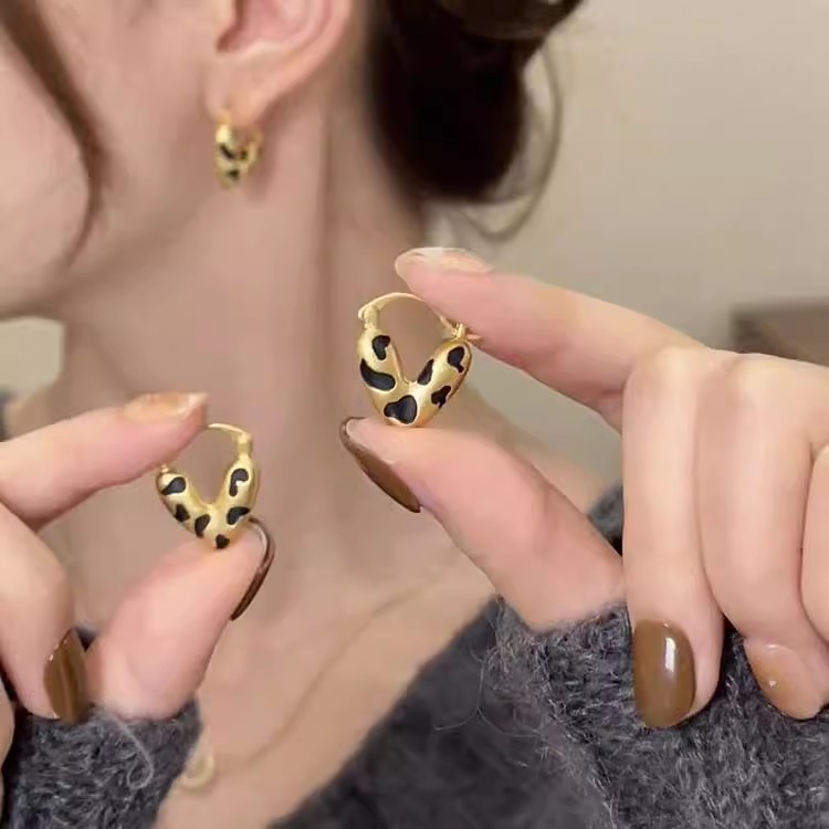 S925銀針耳飾り金色艶消し豹紋愛耳ボタンイヤリング女性大衆デザイン感秋冬レトロ耳飾り