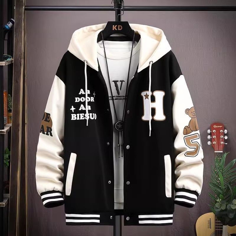 ベルベットフード付きジャケット男性冬の新しい香港風の流れがかっこいい青少年学生の子羊のベルベット保温野球服