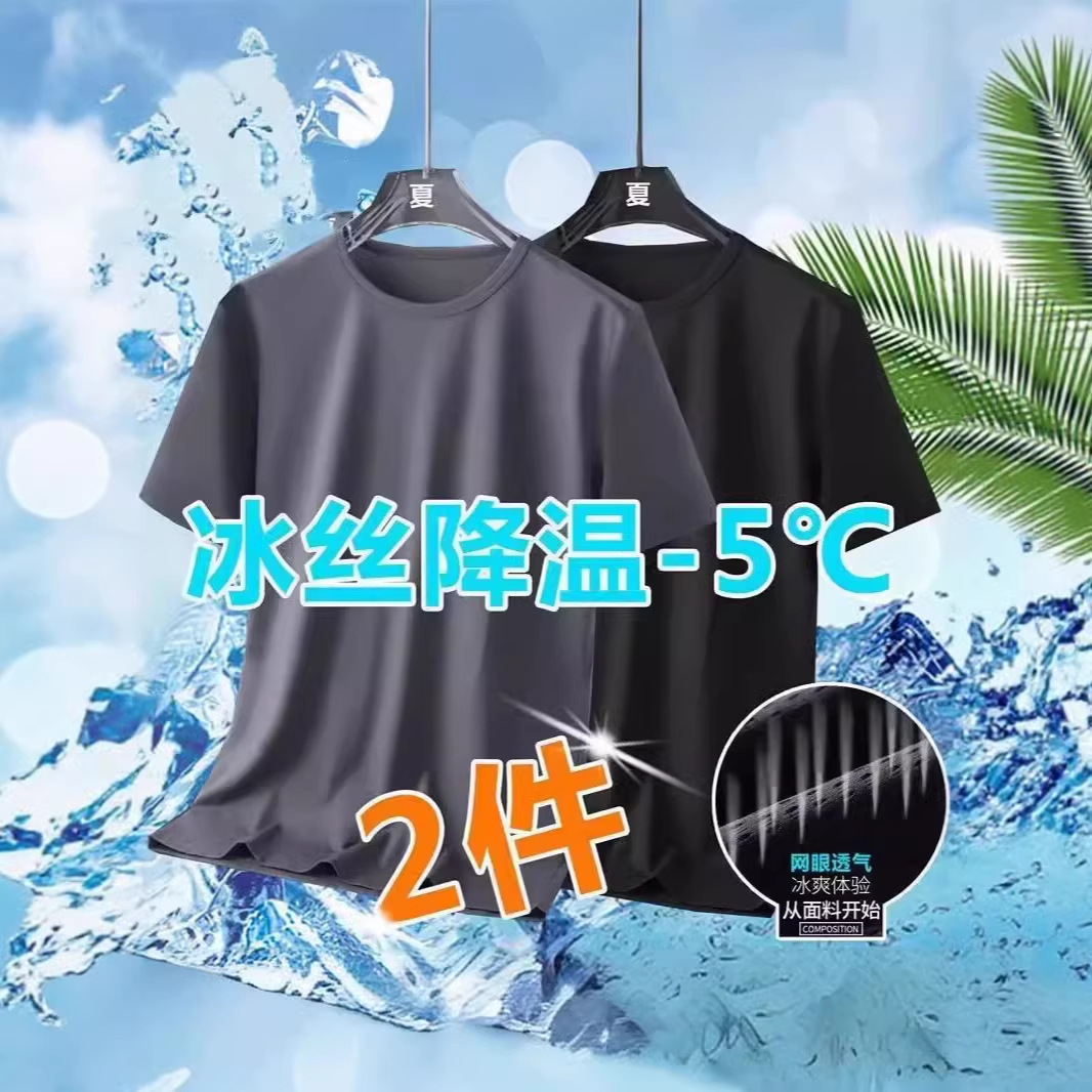 夏の新型氷糸純色半袖tシャツ男ゆるい大きいサイズ男服シンプル百合tシャツカジュアル半袖男