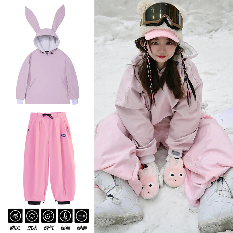 きのこの頭のかわいいウサギのスキー服のウサギの耳の防水のガードルの通気性の男女の同じ韓国版の突撃服