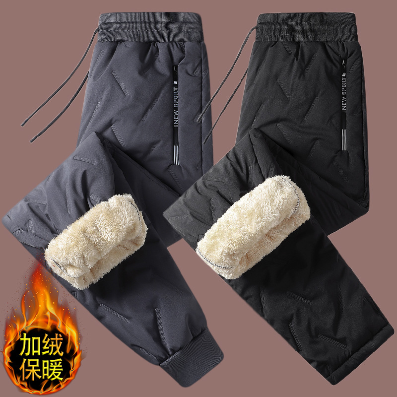 子羊の厚い綿毛のズボンの女性の冬のベルベットの厚いズボンの2024の新型の中年のお母さんの外は防風の保温のズボンを着ます。
