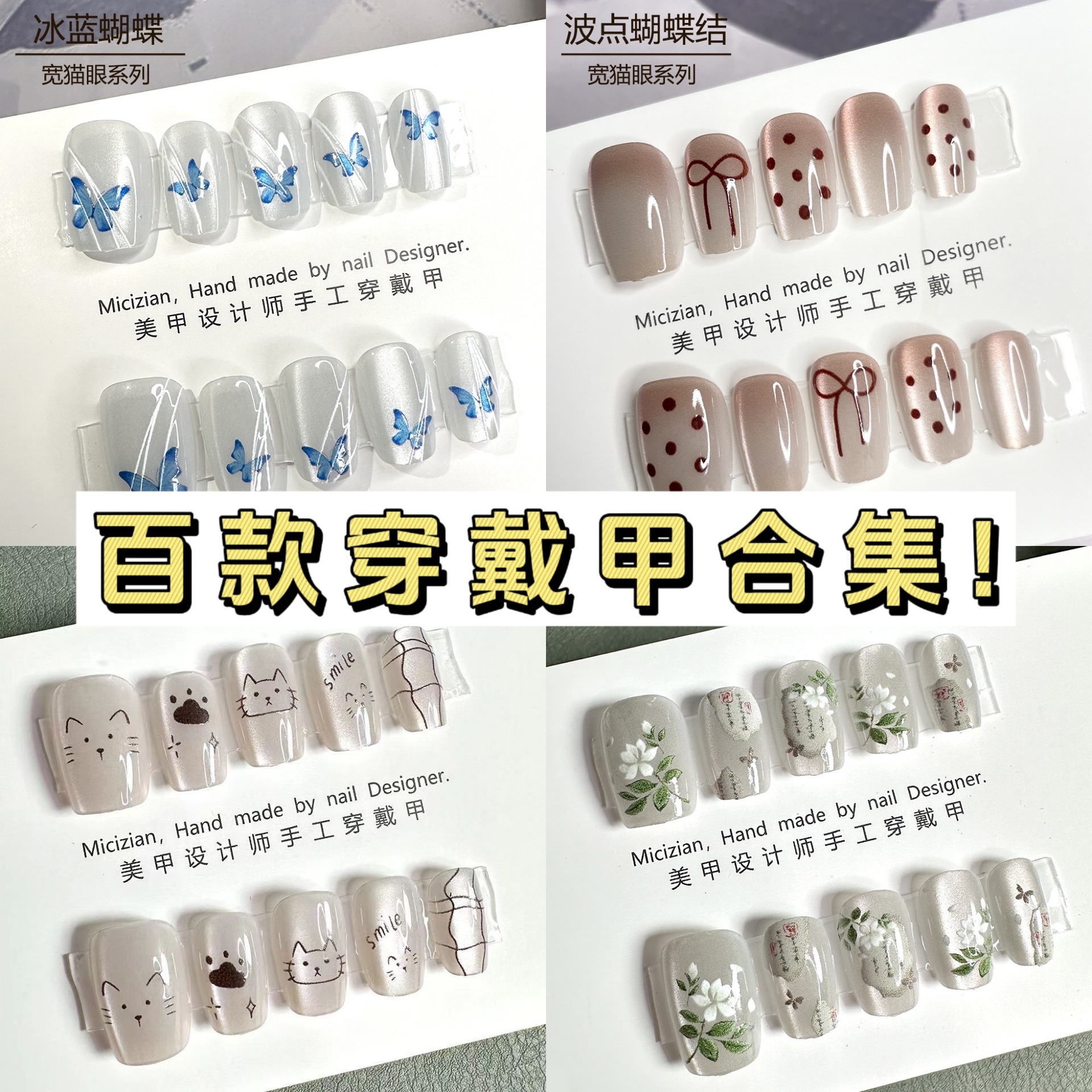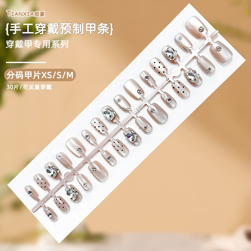 売れ残り返品可能、夜市屋台生放送、ブラインドボックス、ヌードカラーウェアラブルネイル、おしゃれでシンプルなショートネイル、キャットアイ