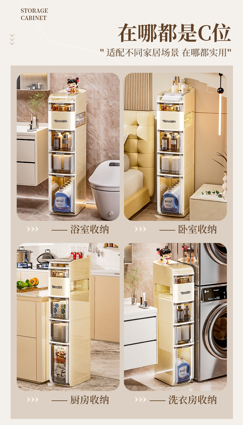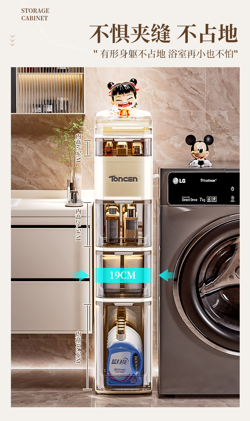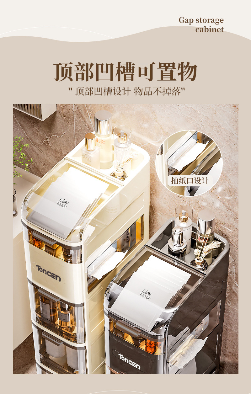 浴室挟みキャビネットトイレリビングルームロッカー狭い多機能収納キャビネット物置棚ティッシュプラスチック大容量