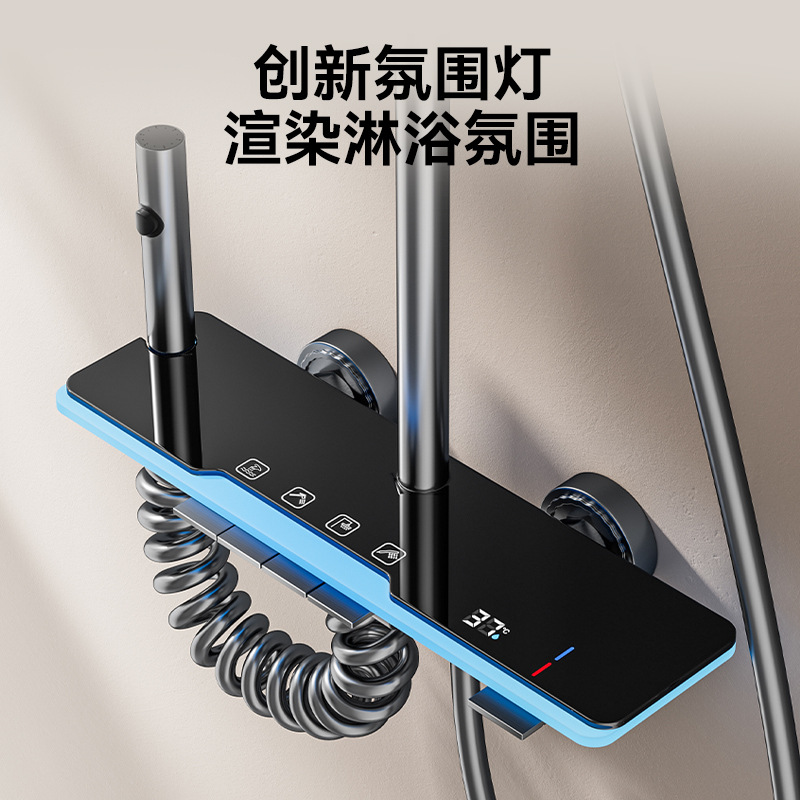 枪灰色氛围灯淋浴花洒套装浴室恒温增压数显钢琴淋浴器