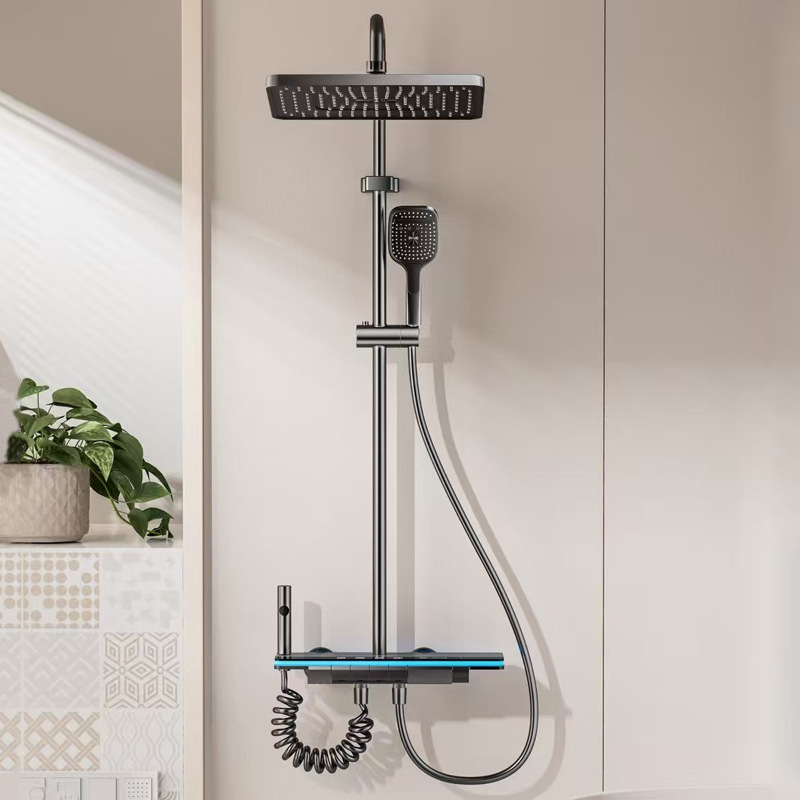 ガンメタルグレーの雰囲気照明付きシャワーヘッドセット、恒温デジタルディスプレイ付きシャワー、ピアノキー式浴室隠蔽型