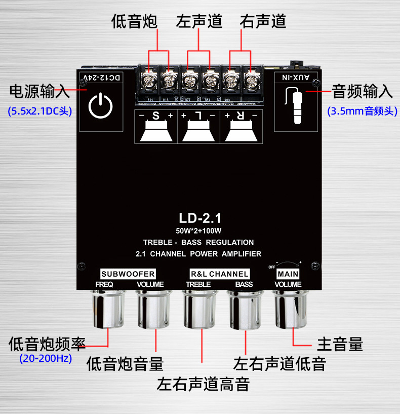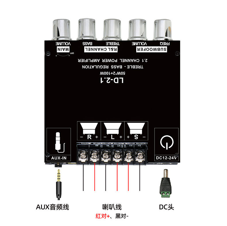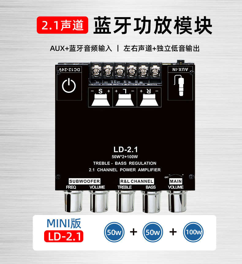 跨境专供2.1声道蓝牙数字功放板模块高低音调重低音大功率功放机