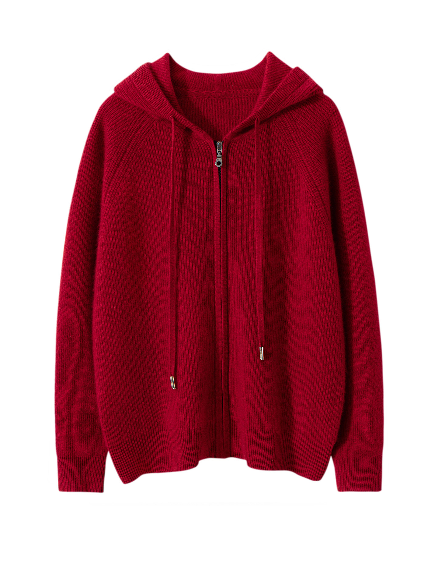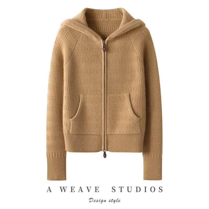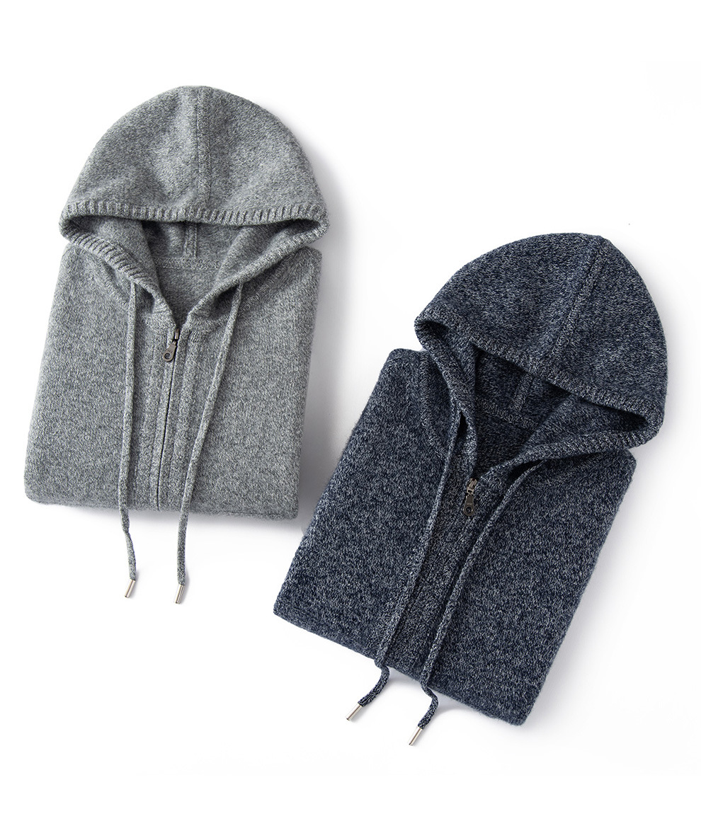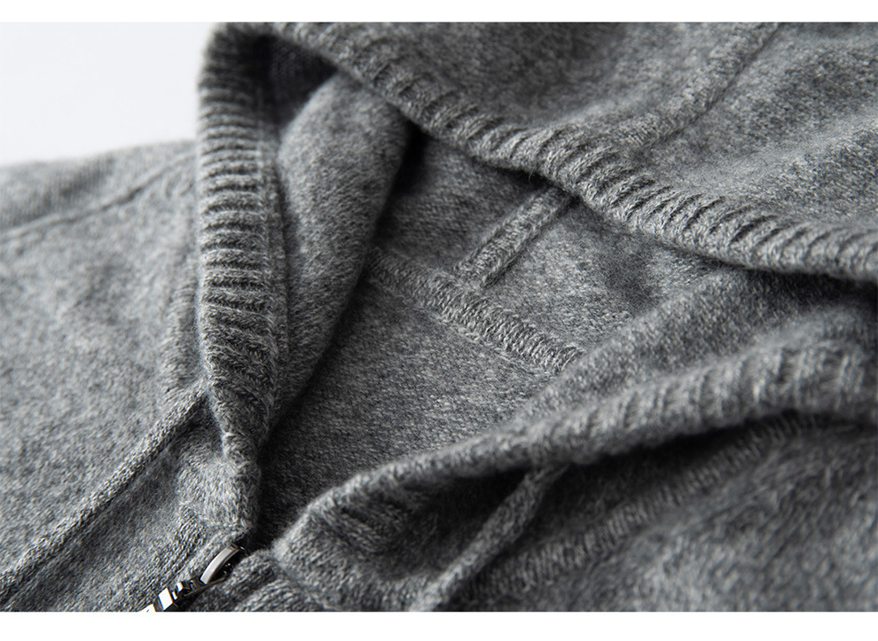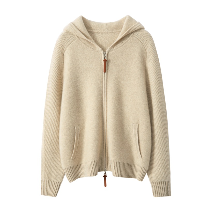100纯山羊绒针织开衫连帽拉链简约加厚毛衣外套帽衫落肩袖羊绒衫