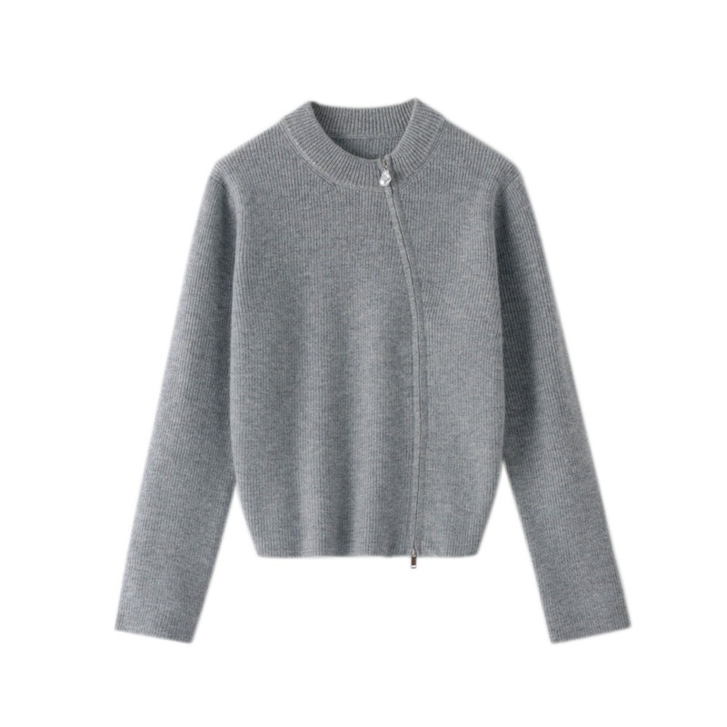 カシミヤレディースカーディガン、ラウンドネック、サイドジッパー、秋冬新作、厚手、おしゃれで万能、長袖ウールニットセータージャケット