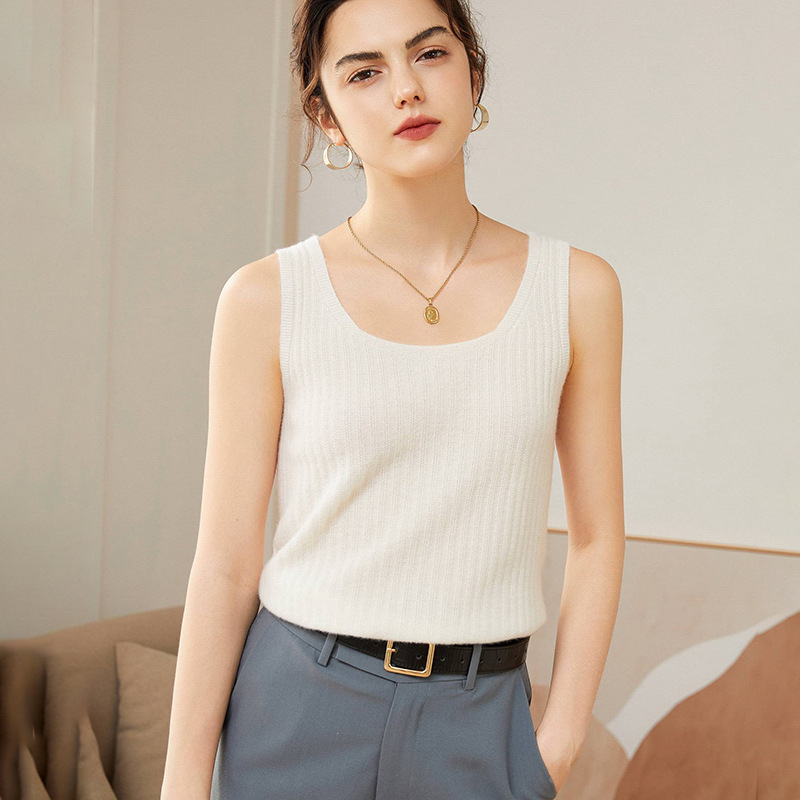 カシミヤのキャミソール女性u襟秋冬新作100% カシミヤのノースリーブニット小インナーシャツ