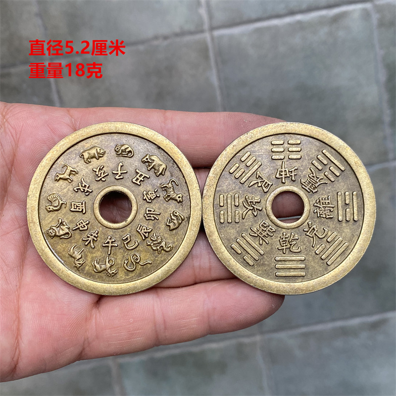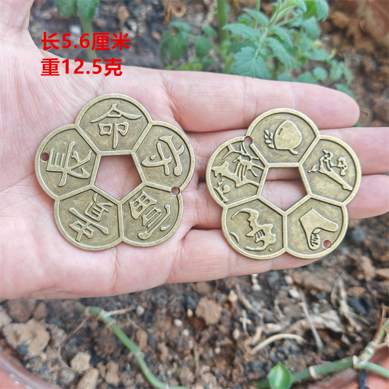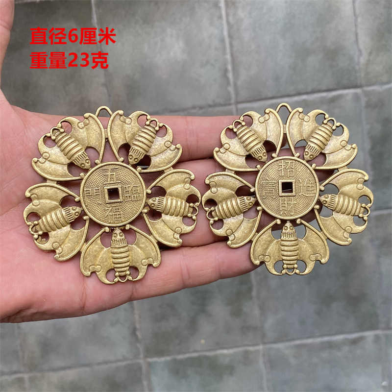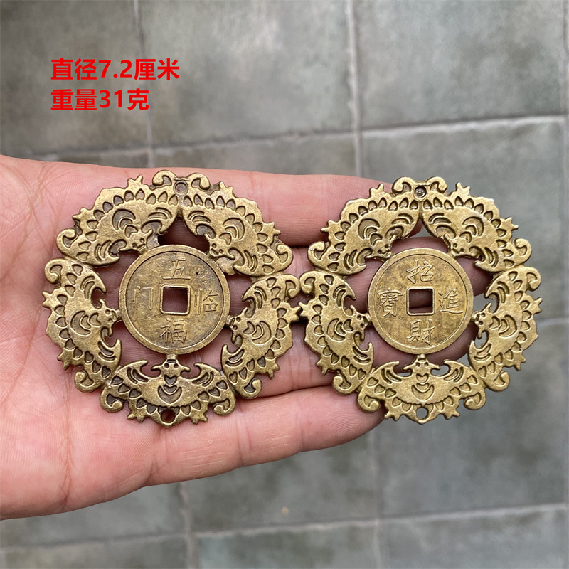 真銅八卦鏡、コウモリ、富と長寿の守り飾り、黄銅製ひょうたん、銅貨、天宝地宝金1〜2枚卸売