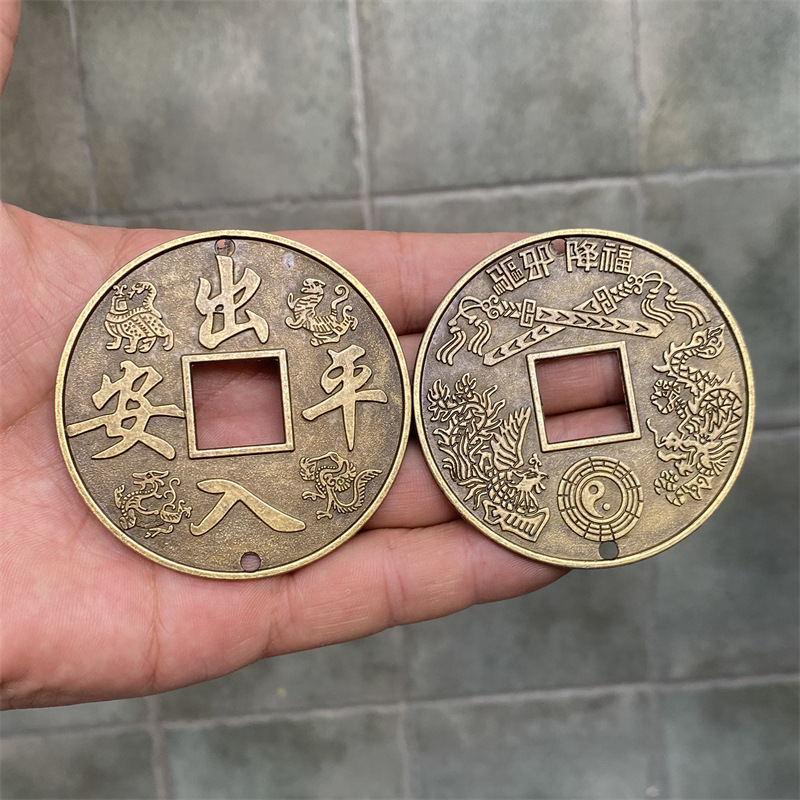 合金大号梅花铜钱仿古币风水吉祥物财福禄寿喜家居装饰品摆件代发
