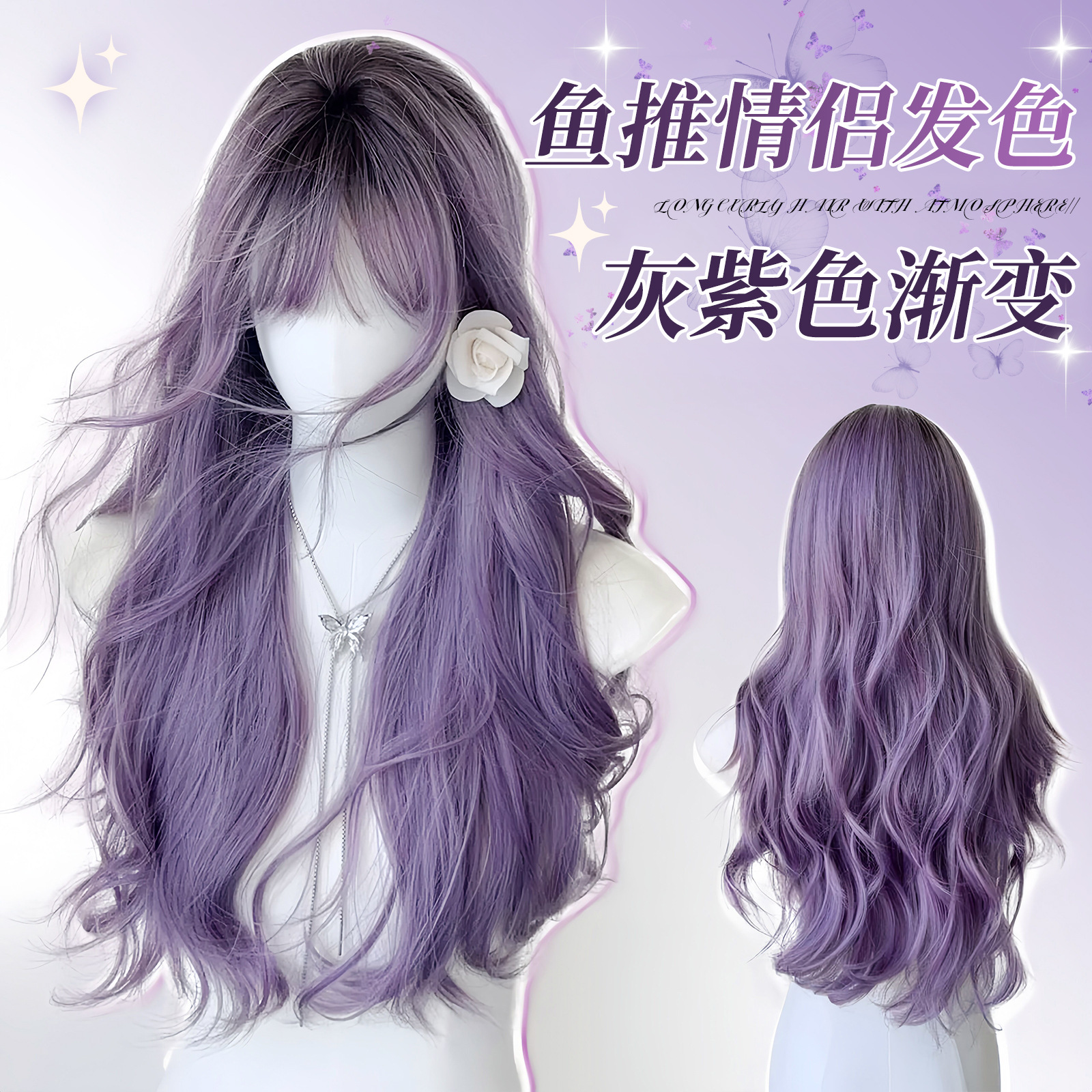 假发女齐刘海长卷发灰紫色水波纹lolita少萝同款仿真发自然全头套