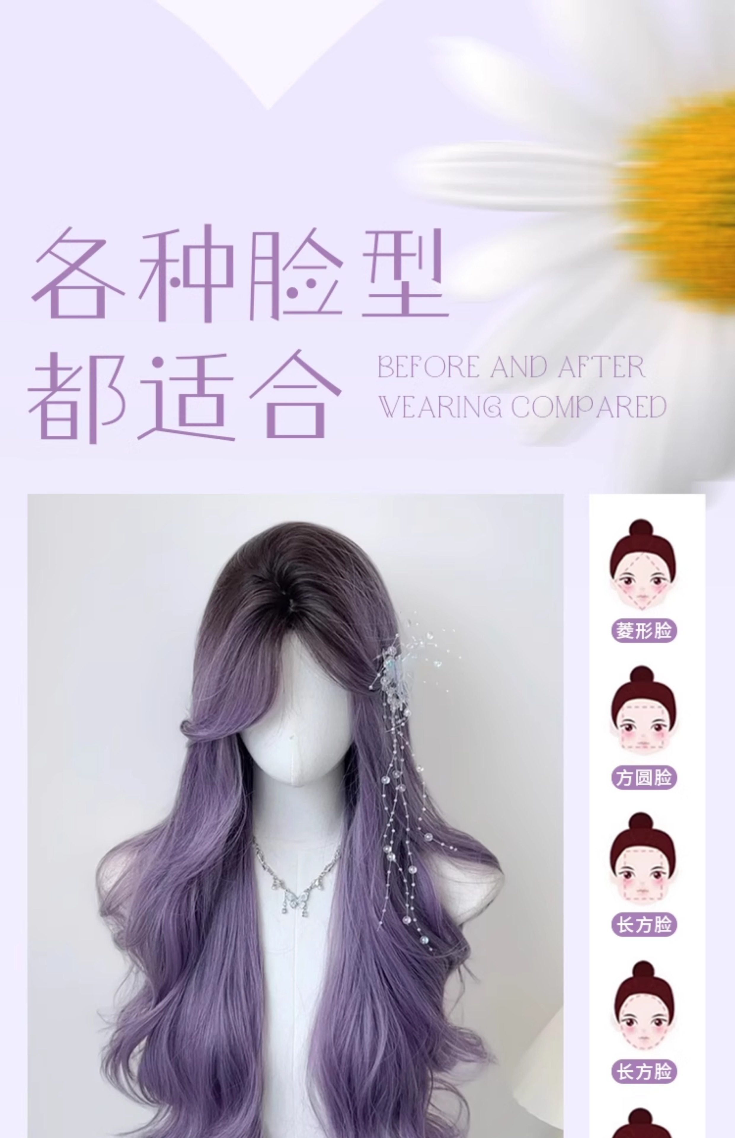 不用带发网的假发女渐变紫色大波浪挑染仿真日常氛围长卷发全头套