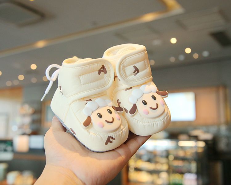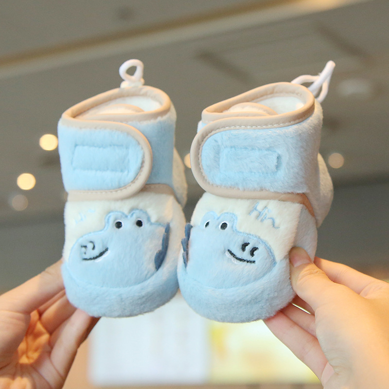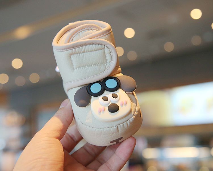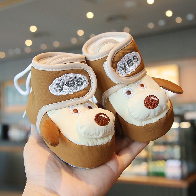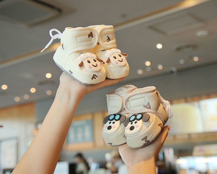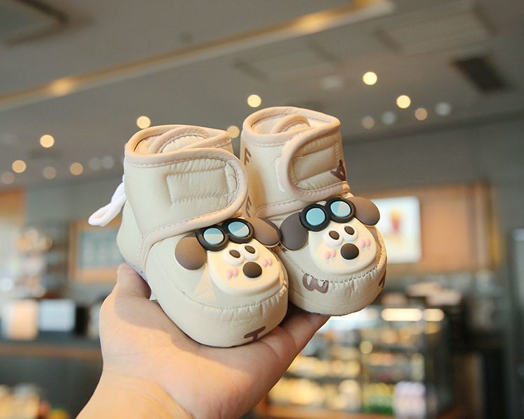 婴儿棉鞋秋冬加绒卡通公仔宝宝雪地靴保暖厚软底学步鞋0-1岁走路
