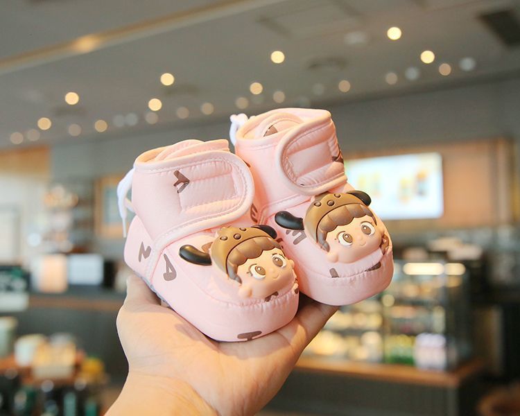 秋冬婴儿棉鞋宝宝幼童0-1岁软底学步鞋不掉走路男女童可爱公仔靴