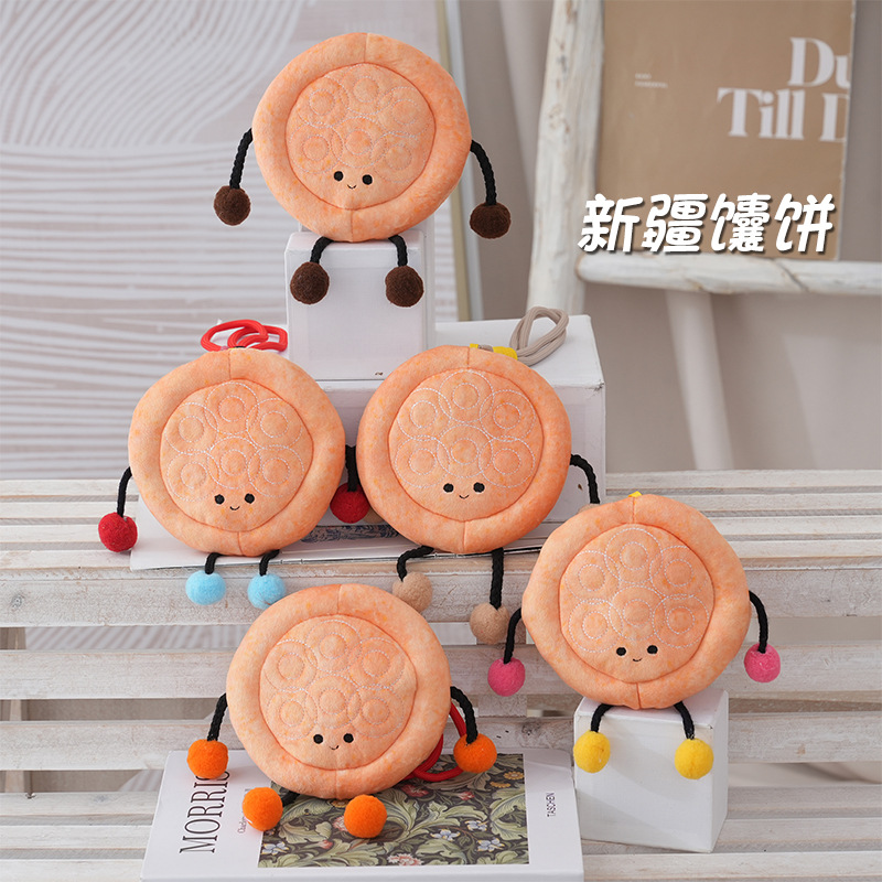 跨境超萌新疆馕饼单肩包挂件毛绒玩偶公仔包包挂饰钥匙扣毛绒玩具