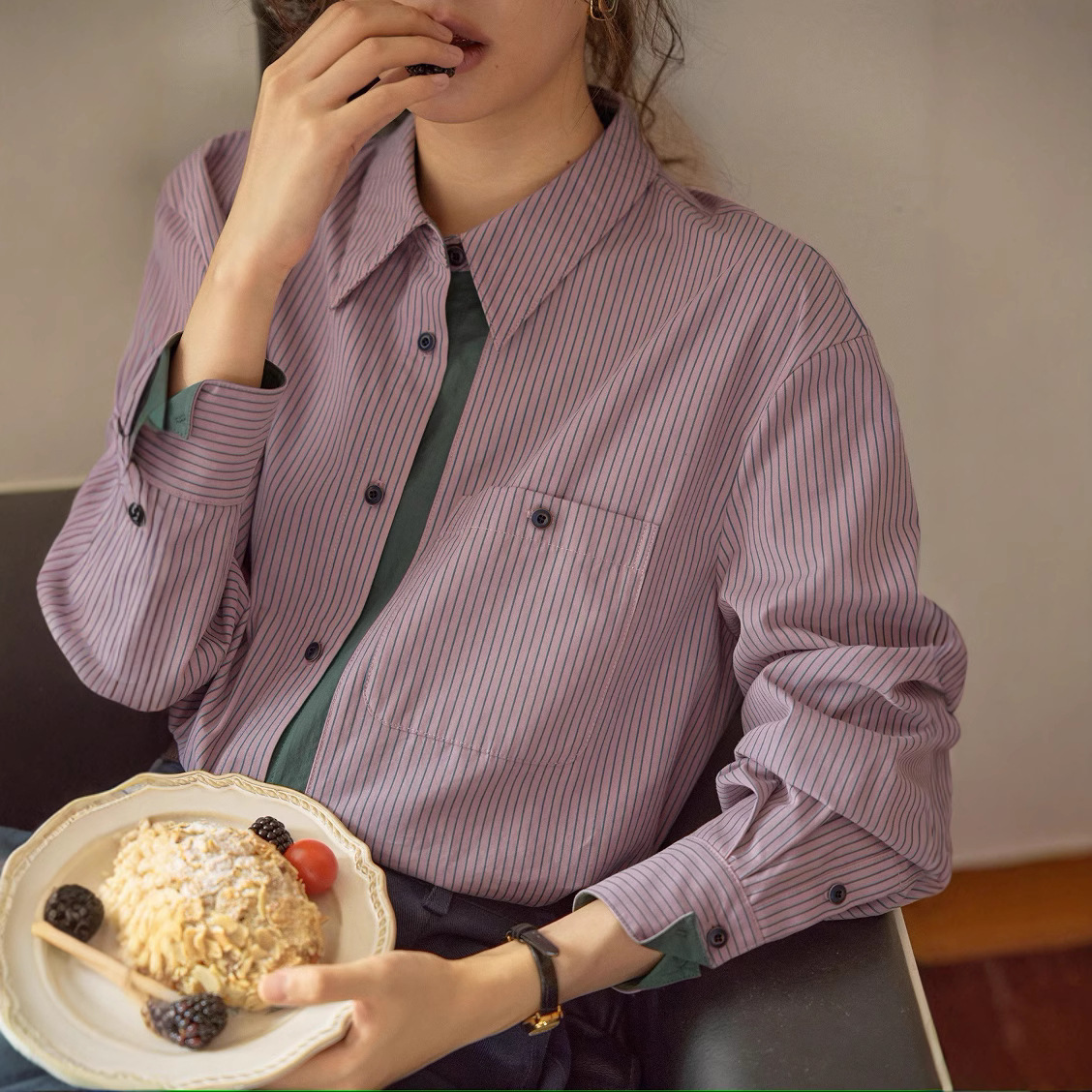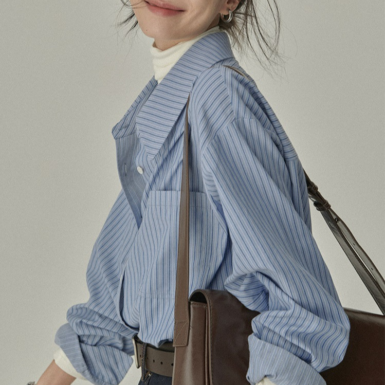 【高级通勤シャツ】高级感微ゆったり定番ストライプシャツトップスレディース