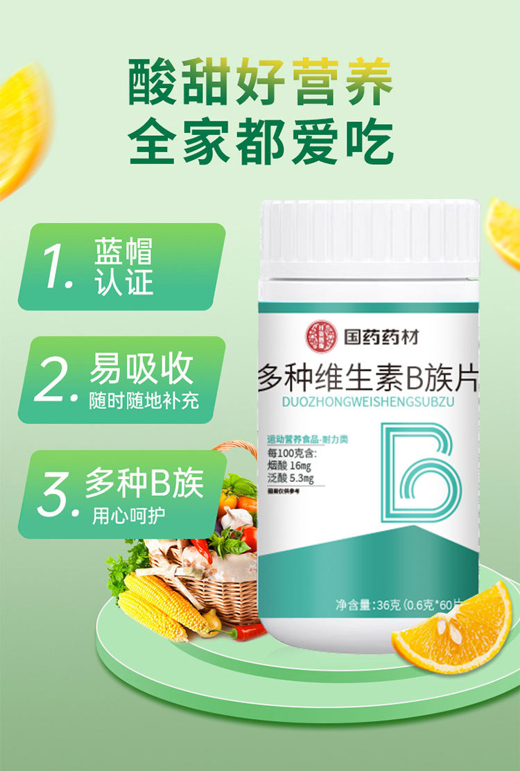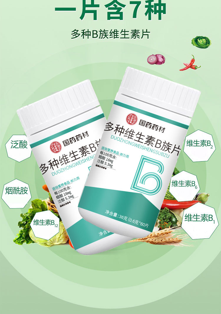 国药药材多种维生素b族片维生素叶酸b1b2b6生物素特殊膳食补充剂