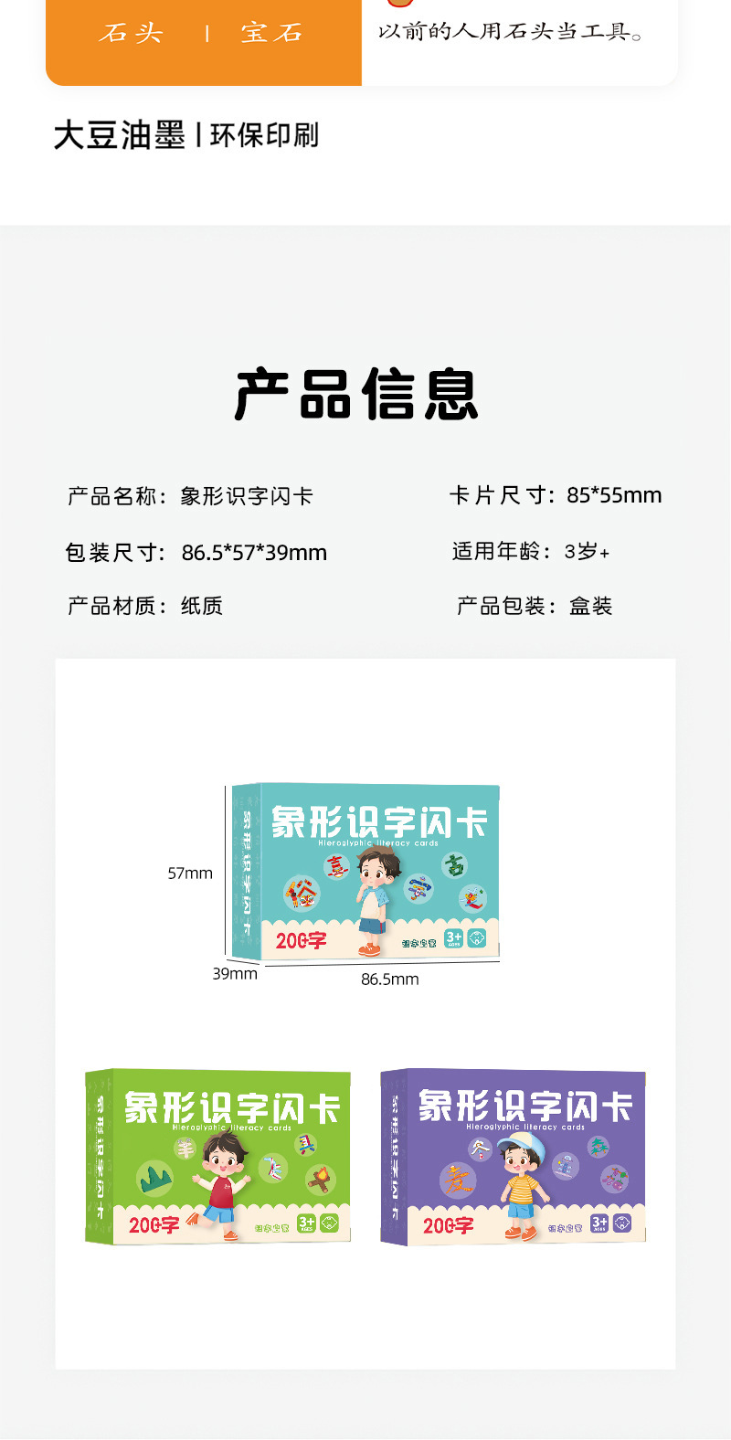 规格 象形识字200字【绿盒】,象形识字200字【蓝盒】,象形识字200字【紫盒】