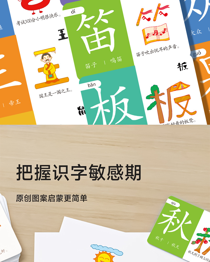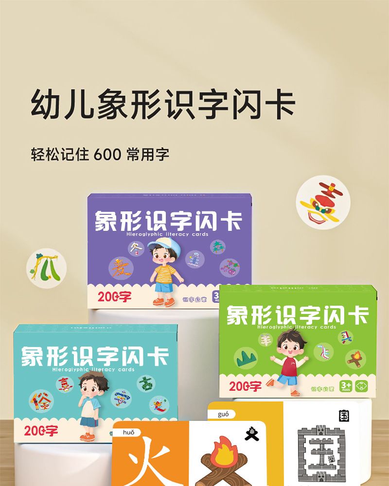 儿童象形识字卡3-6岁宝宝早教启蒙认汉字卡片基础生字卡早教闪卡