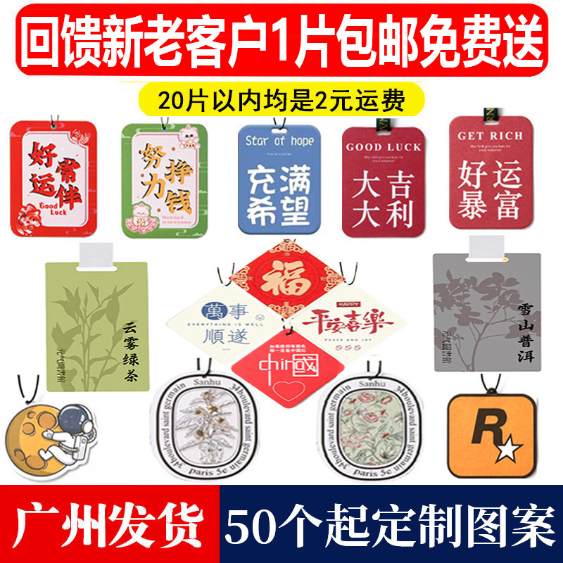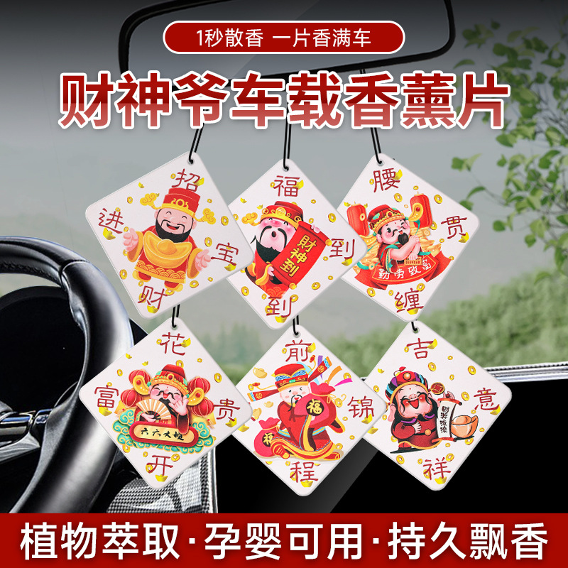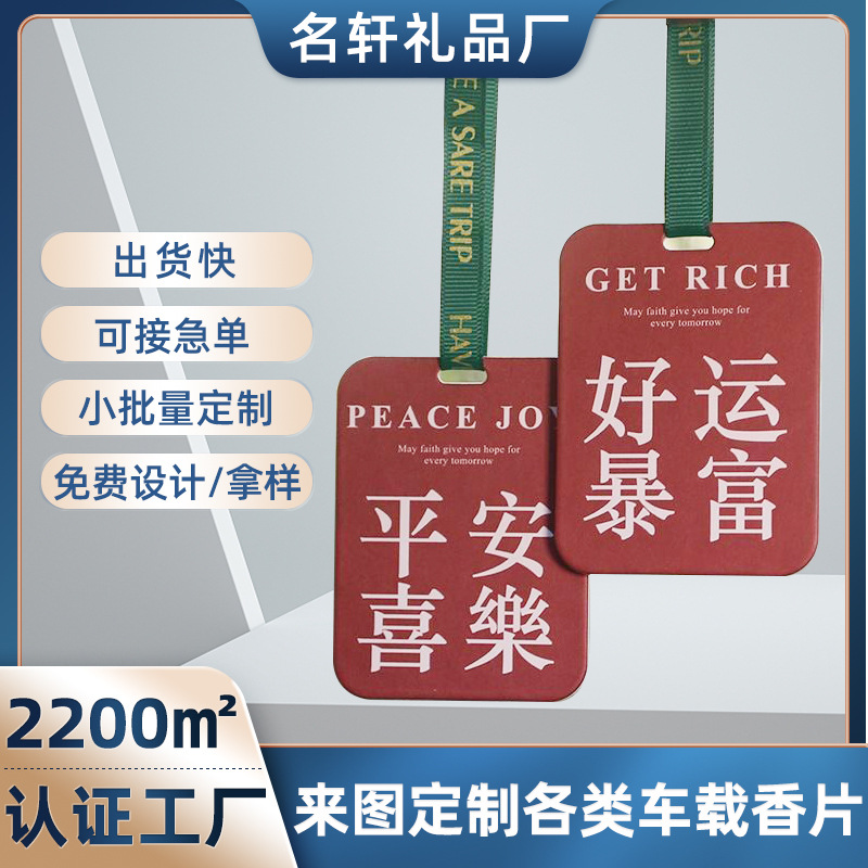 现货跨境花香车载香片 喜庆福字财神香片可印logo商务香薰片定 制