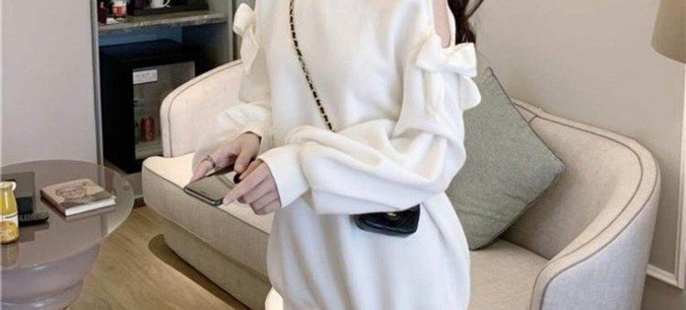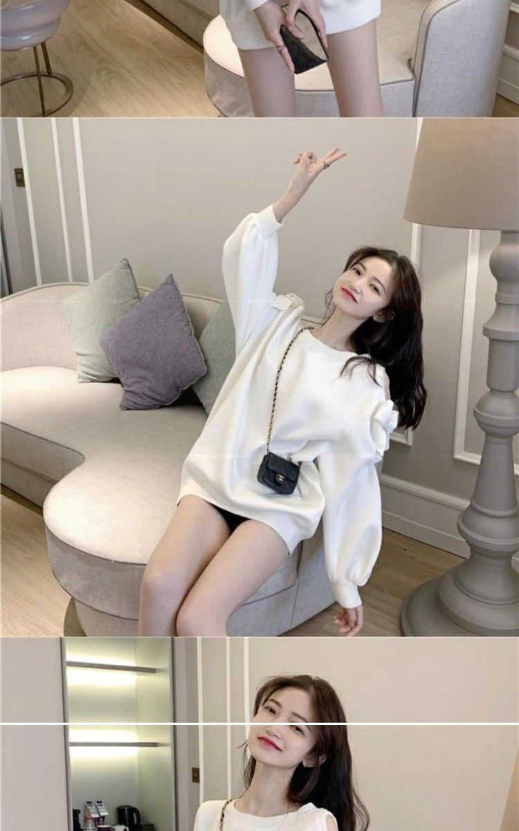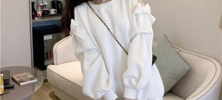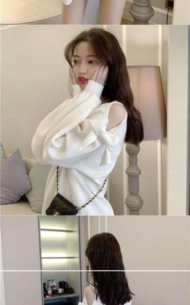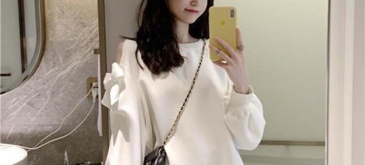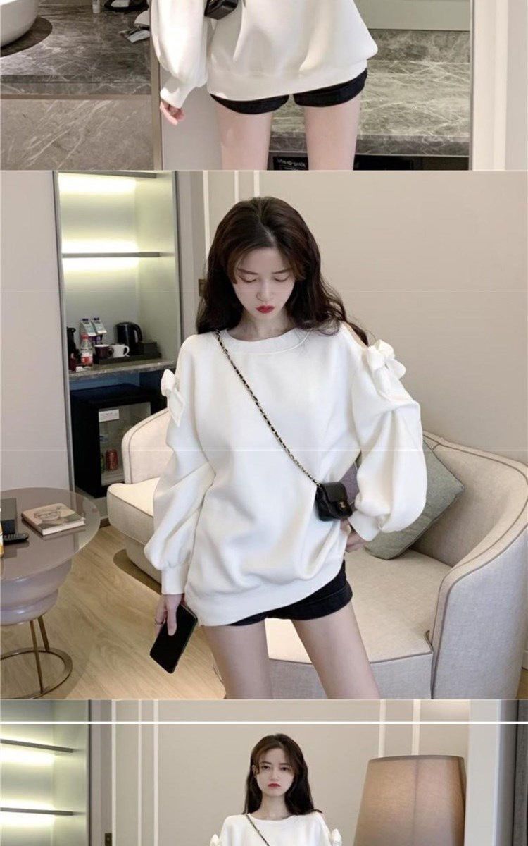 蝴蝶结长袖露肩卫衣女装春秋季薄款大码无帽ins风辣妹中长款上衣