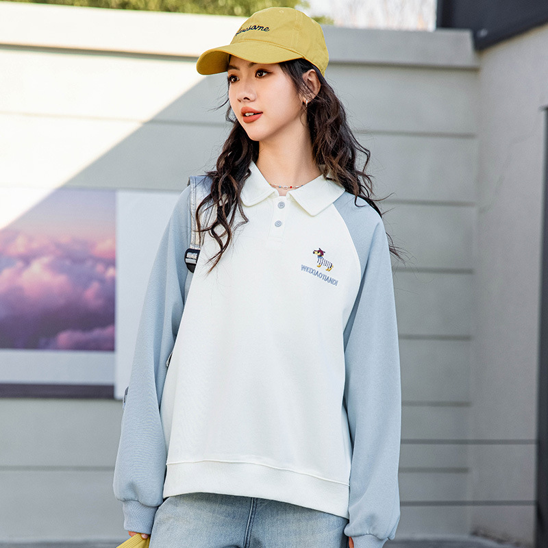 25009高初中学生polo领卫衣少女套头大童女孩春秋时尚上衣青少年