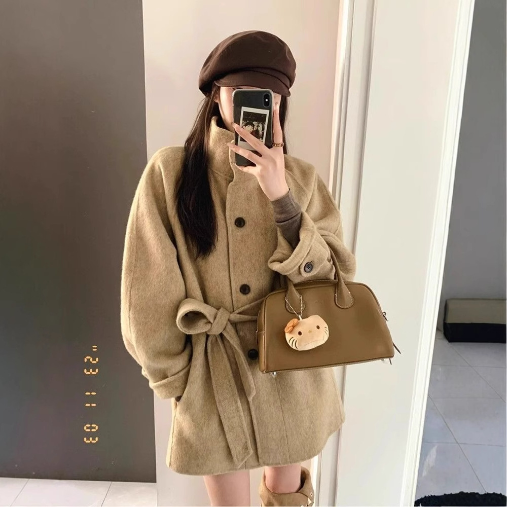 小柄な中長のラシャのコート2024秋冬の韓国版の新型のヘボン風のゆったりした毛のコートの女性の卸売り