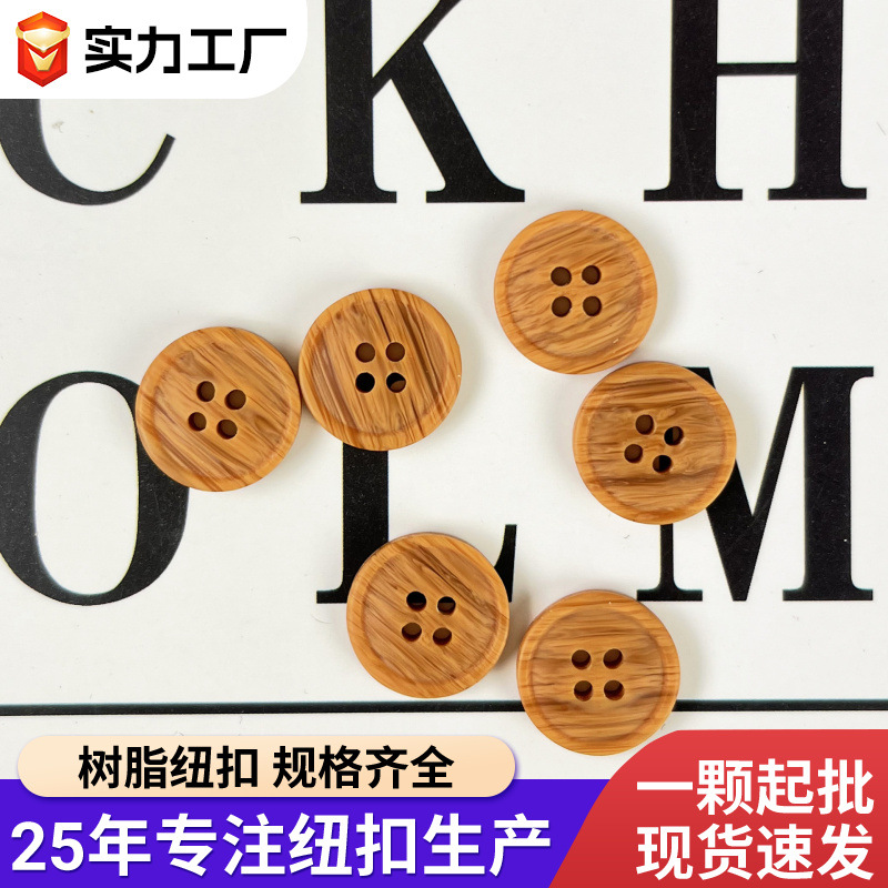 卸売りは木目四眼ボタン樹脂ボタンを真似ています。