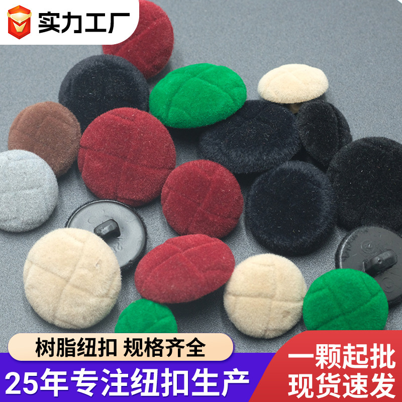 树脂纽扣彩色植绒钮扣秋冬季植绒装饰扣子大衣外套厂家新款四眼扣