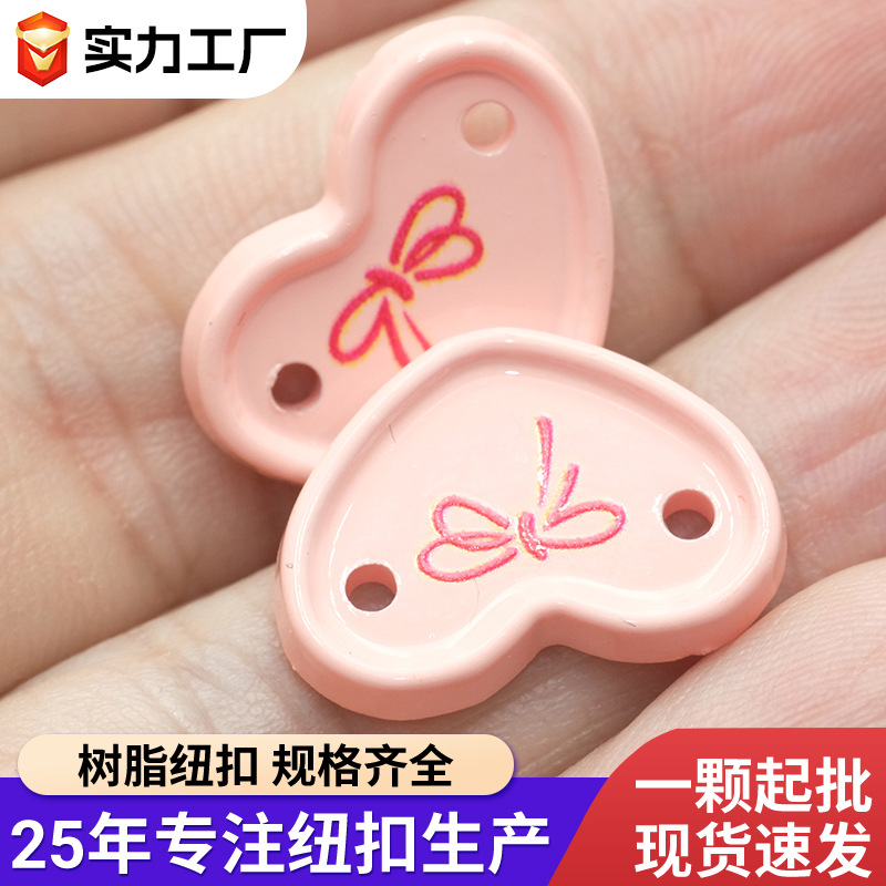 爱心蝴蝶结两眼钮扣商标吊牌铭牌标时尚蝴蝶结印花心形百搭钮扣