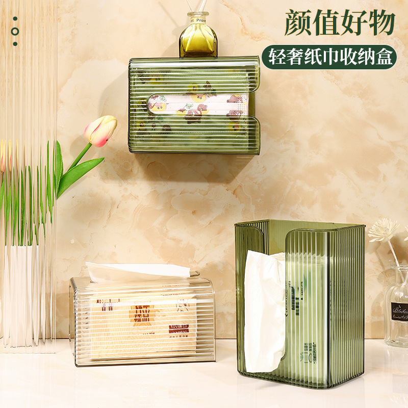 ティッシュボックスライト高級壁掛けリビングルームコーヒーテーブル多機能パンチフリーストレージナプキンティッシュペーパーマスク収納ボックス