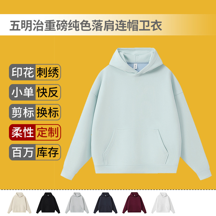 2025新款五明治重磅纯色落肩连帽卫衣定制宽松休闲潮上衣外套印字